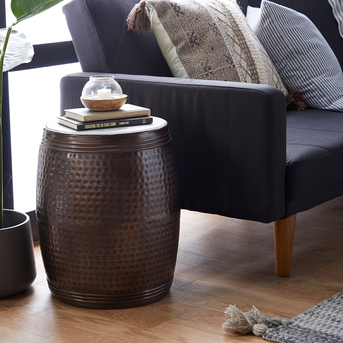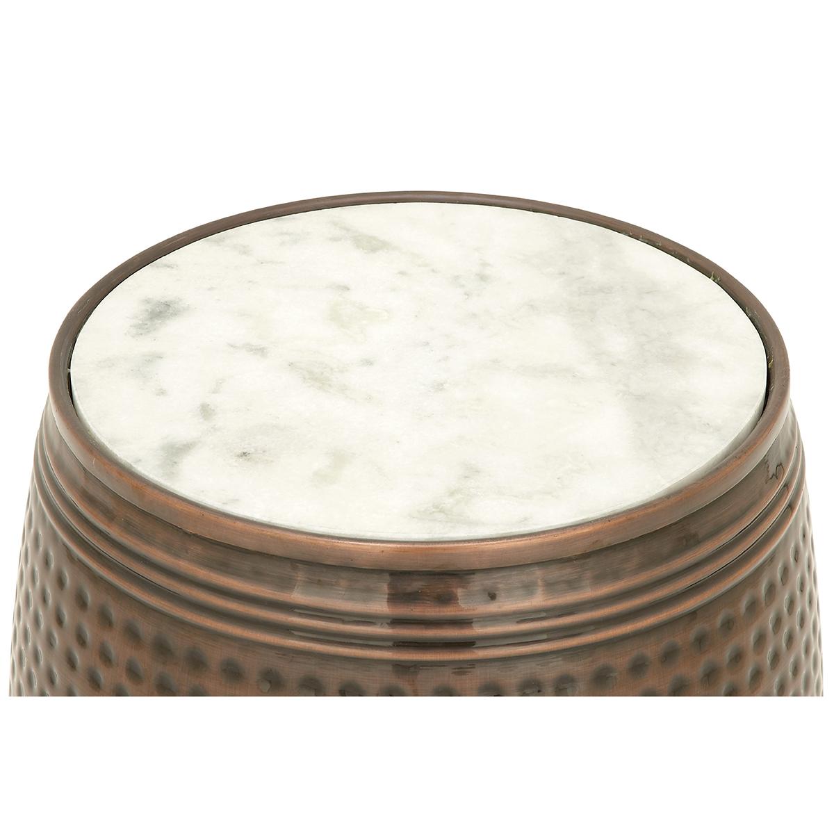 Vintage-inspired interior concepts gain a versatile furniture piece in this 9th & Pike® marble country accent table. It has a textured bronze-colored iron body and a marble tabletop and is tapered at the edges. Use it as a side table in the living room or as a lampstand in the bedroom.