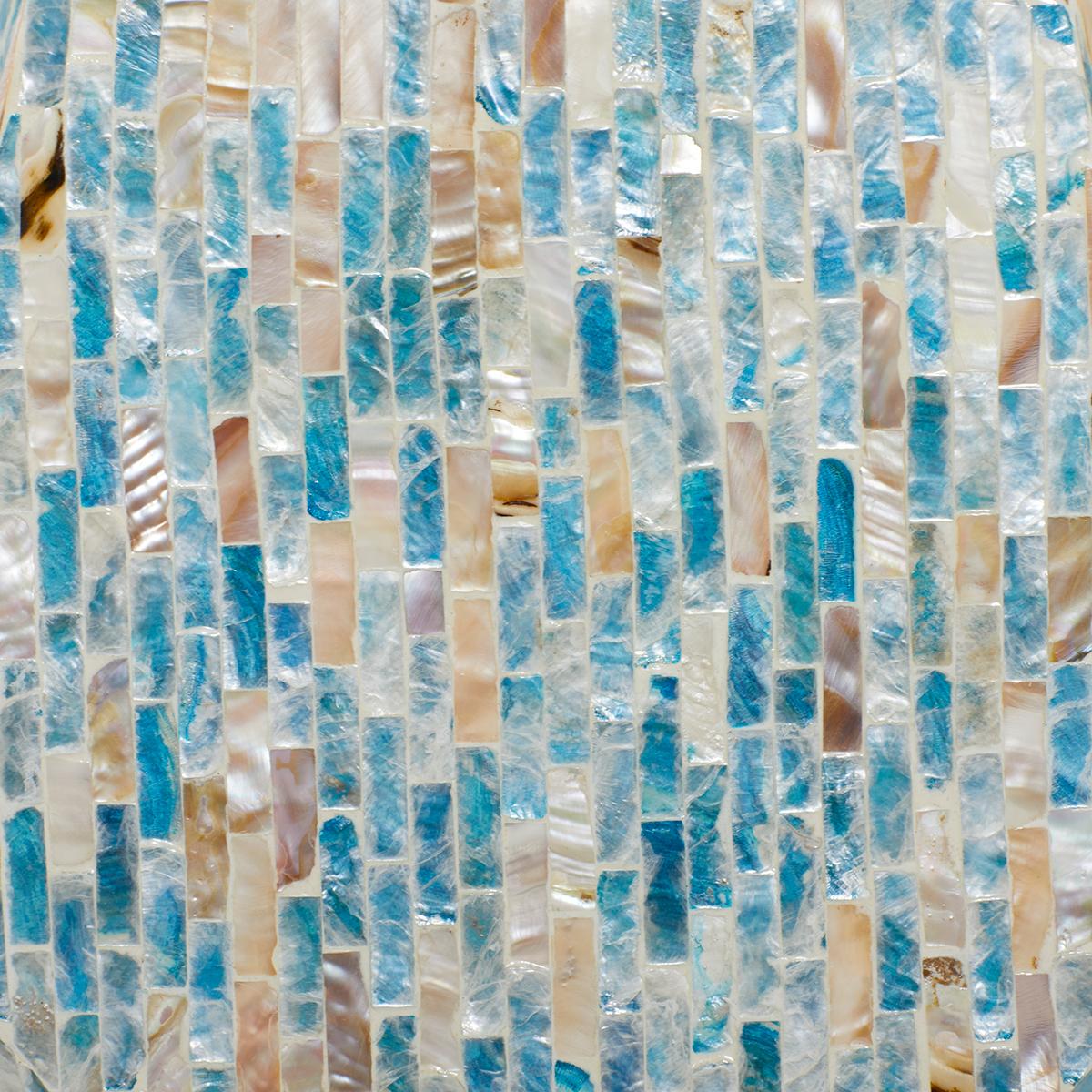 This 9th & Pike® multi-colored geometric accent table is a refined and stunning statement piece that gives a rich look to your home. An accent décor piece that features a geometric shape and shell mosaic pattern with mixed colors. Made of mussel shells and wood, this charming décor is both stylish as well as practical.