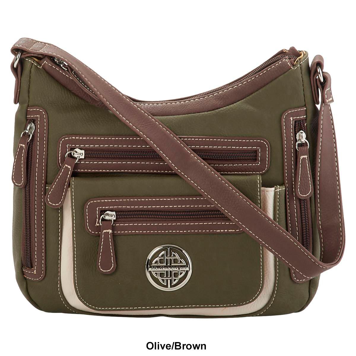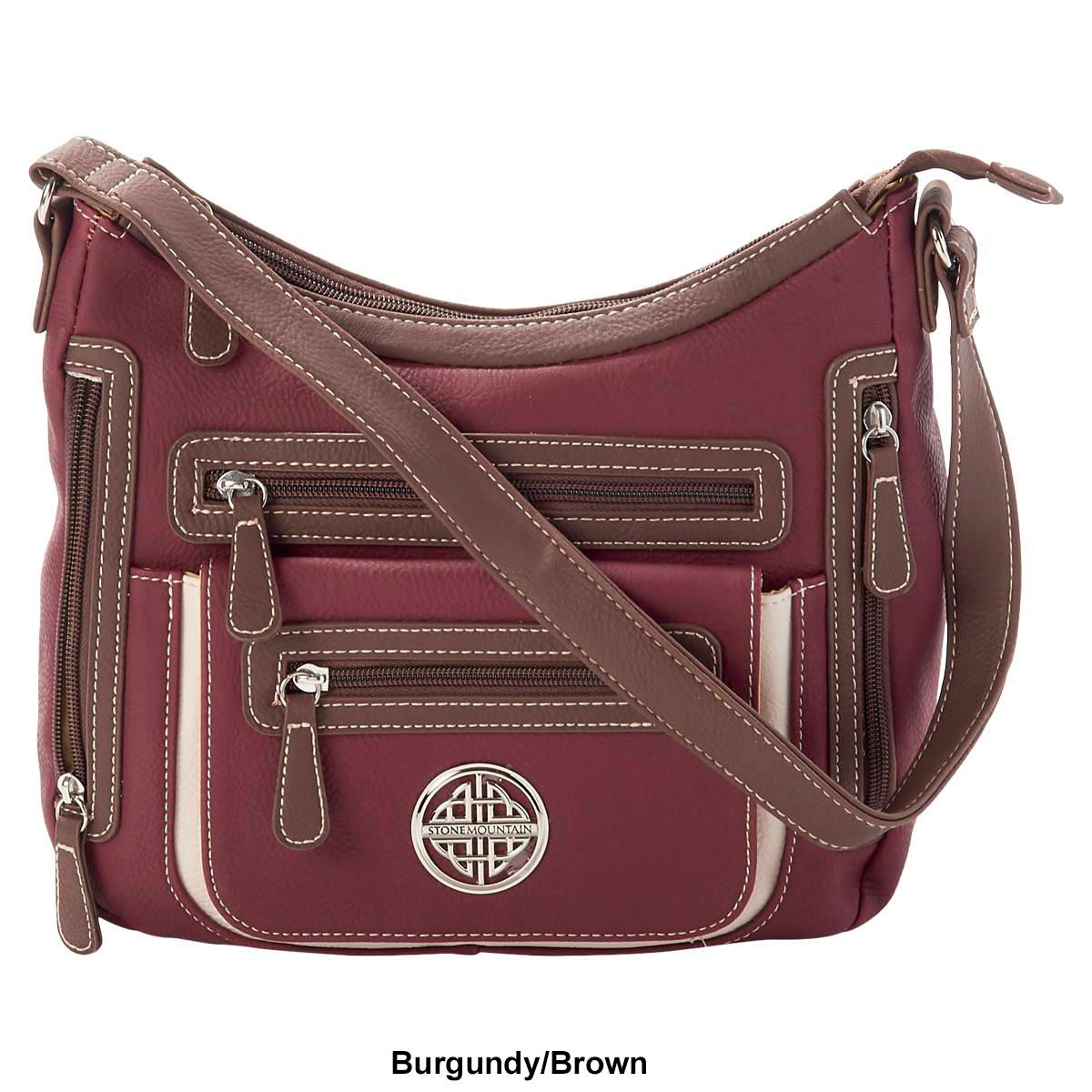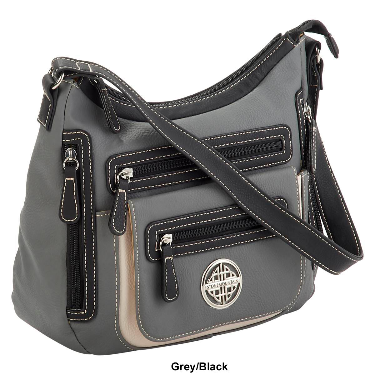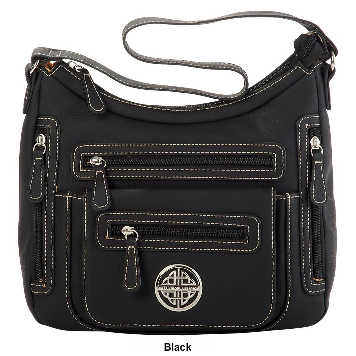 Description Stay organized during any occasion with this Stone Mountain Mountain Ridge vinyl shoulder bag. This shoulder bag features a single strap, top zip closure, four front...
