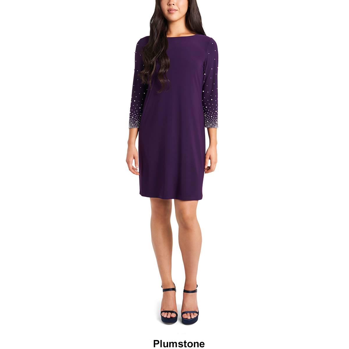 Description Beaded trim sleeves accent this Womens MSK solid sheath dress. Features include 3/4 sleeves and a round neckline. Pair it with your favorite heels for a fabulous...