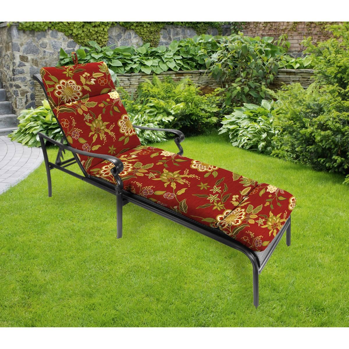 Description Refresh your patio, porch, or poolside area with this Jordan Manufacturing Alberta Salsa floral chaise lounge cushion. Made to withstand hours of fun in the sun, the...