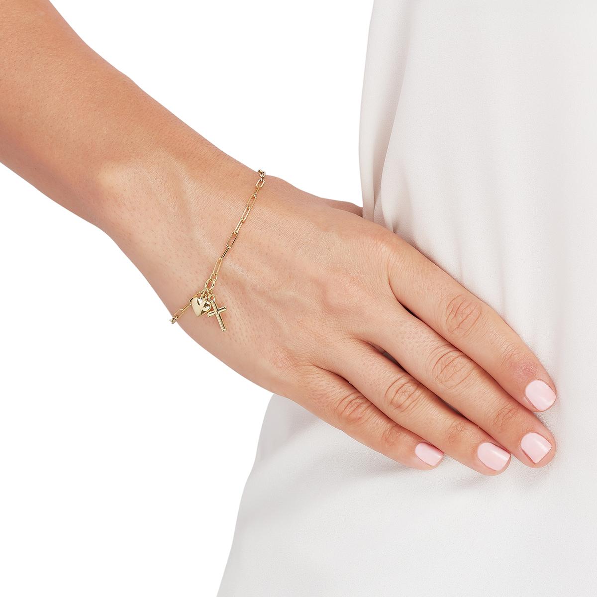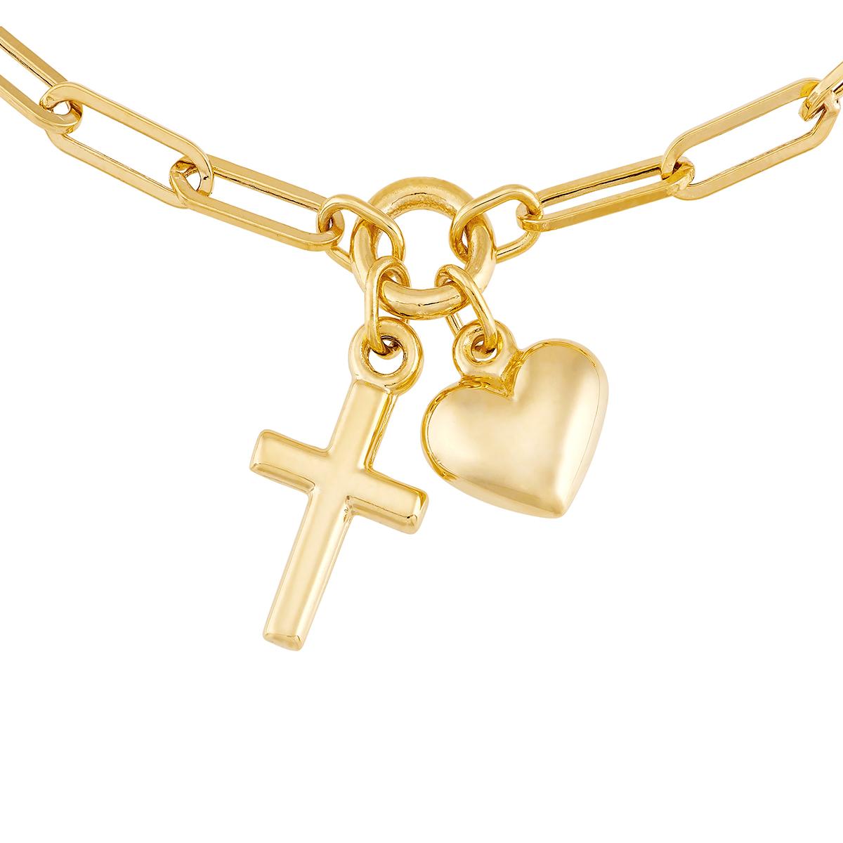 Description Show off your personal sense of style with this Gold Classics™ 10kt. yellow gold cross and heart charm bracelet from Turkey. Made with a 7.5" 2.5mm paperclip chain,...