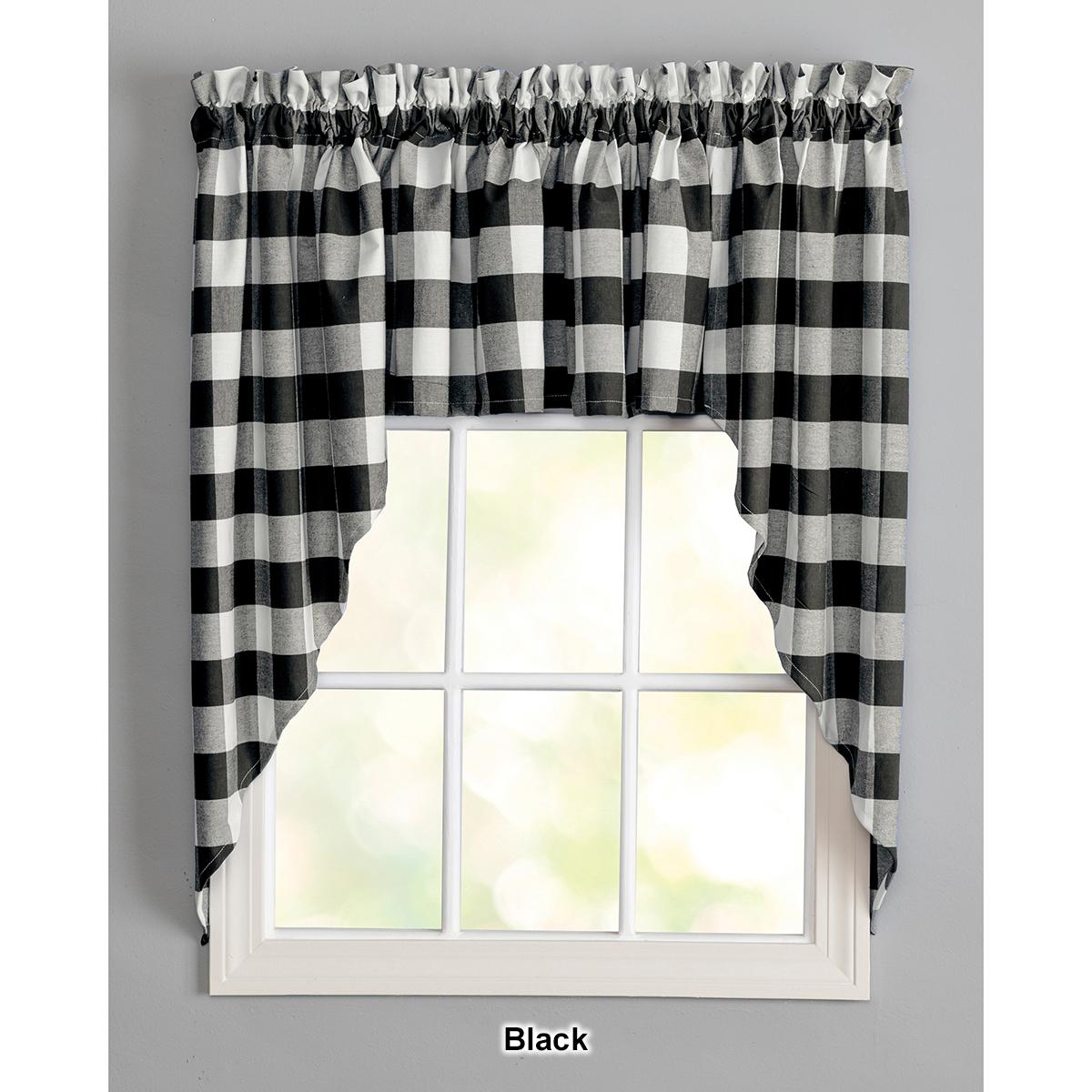 Description This classic yarn-dyed check swag set hits the ultimate farmhouse vibe and is complemented by a matching tier and valance. This basic check pattern will work in...