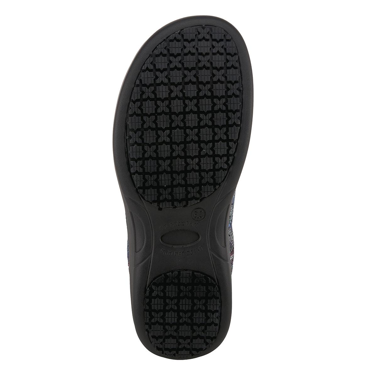 These Womens Spring Step Professional Winfrey Aura clogs feature a printed leather slip-on. With side elastic gore details and comfort padded collar for all-day comfort.