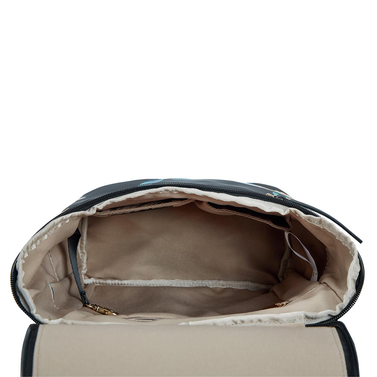 • The spacious main compartment has a wide opening with zip-around flap