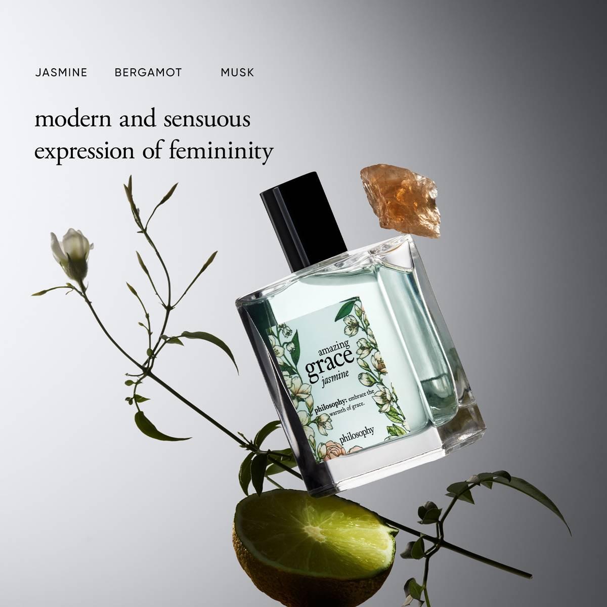 Sensuous, luminous, alluring. Discover the sensuous side of grace. Inspired by the exhilarating warmth of jasmine on your skin, thenewest limited-edition fragrance, amazing grace jasmine, recreates the intimate, comfort, and tenderness of a hug. Soft and subtle, this new twist on grace is a sensuous and alluring bouquet of jasmine petals blended with coconut water, bergamot, and musk.