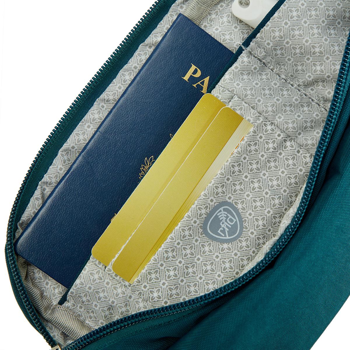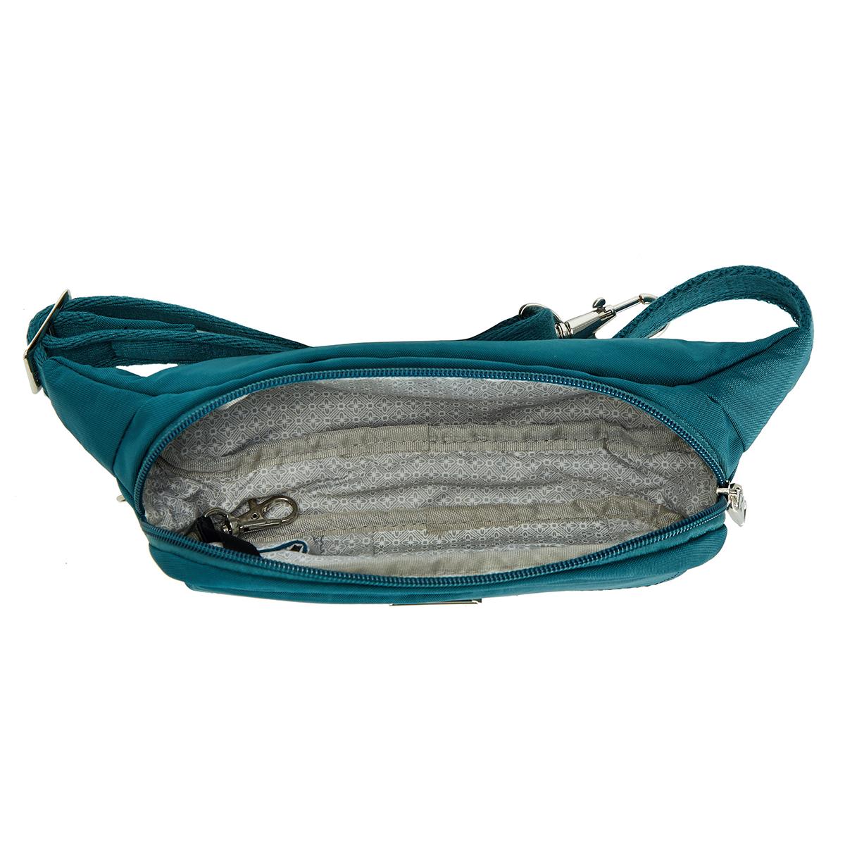 Description Travelon essentials anti-theft slim belt bag. Travel effortlessly and lightly by abandoning bulky bags. Now you can stop watching your bag and look up to see the...