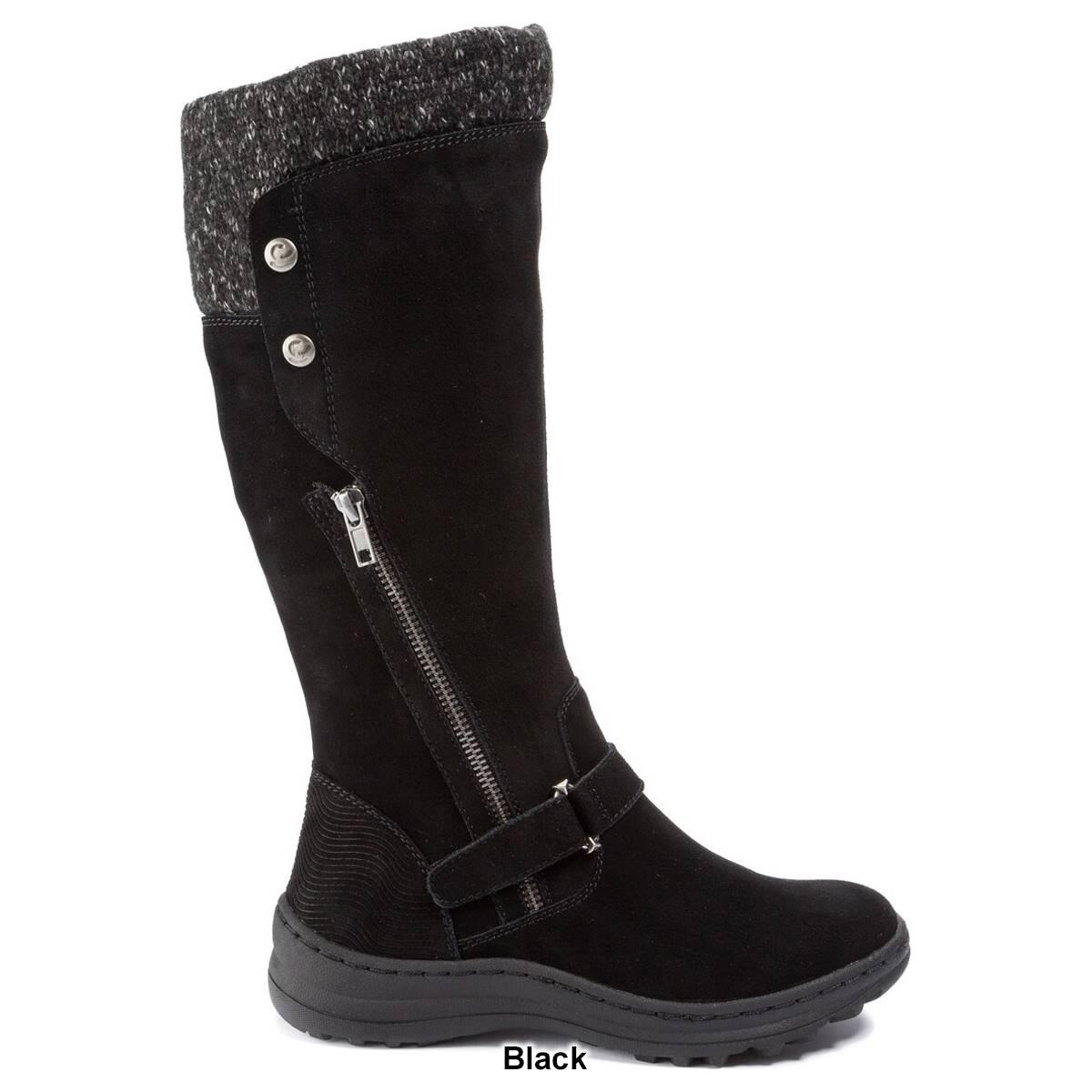 Cozy vibes are yours in the Adele cold weather tall boot from Baretraps®! This casual boot is full of comfort and features an exposed zipper, buckle and button details, and an adorable sweater cuff for style and comfort. The sole is slip resistant to keep you steady no matter what the weather report says. Weatherproof Technology: The water-resistant and weatherproof construction helps keep you dry while the treaded sole is for increased traction. Soft cushioned lining for warmth and comfort every step!