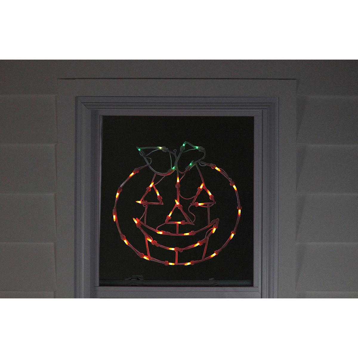 Description Share a festive smile with your neighborhood by displaying this Northlight Seasonal 14-inch. Jack-O-Lantern Halloween Window Décor. It is perfect for Halloween or...