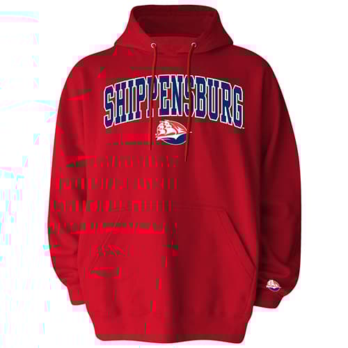 Description Mens Shippensburg Mascot One pullover hoodie with a team logo on the front, kangaroo pocket, small team logo on the left cuff, fleece lined, and a drawstring closure...