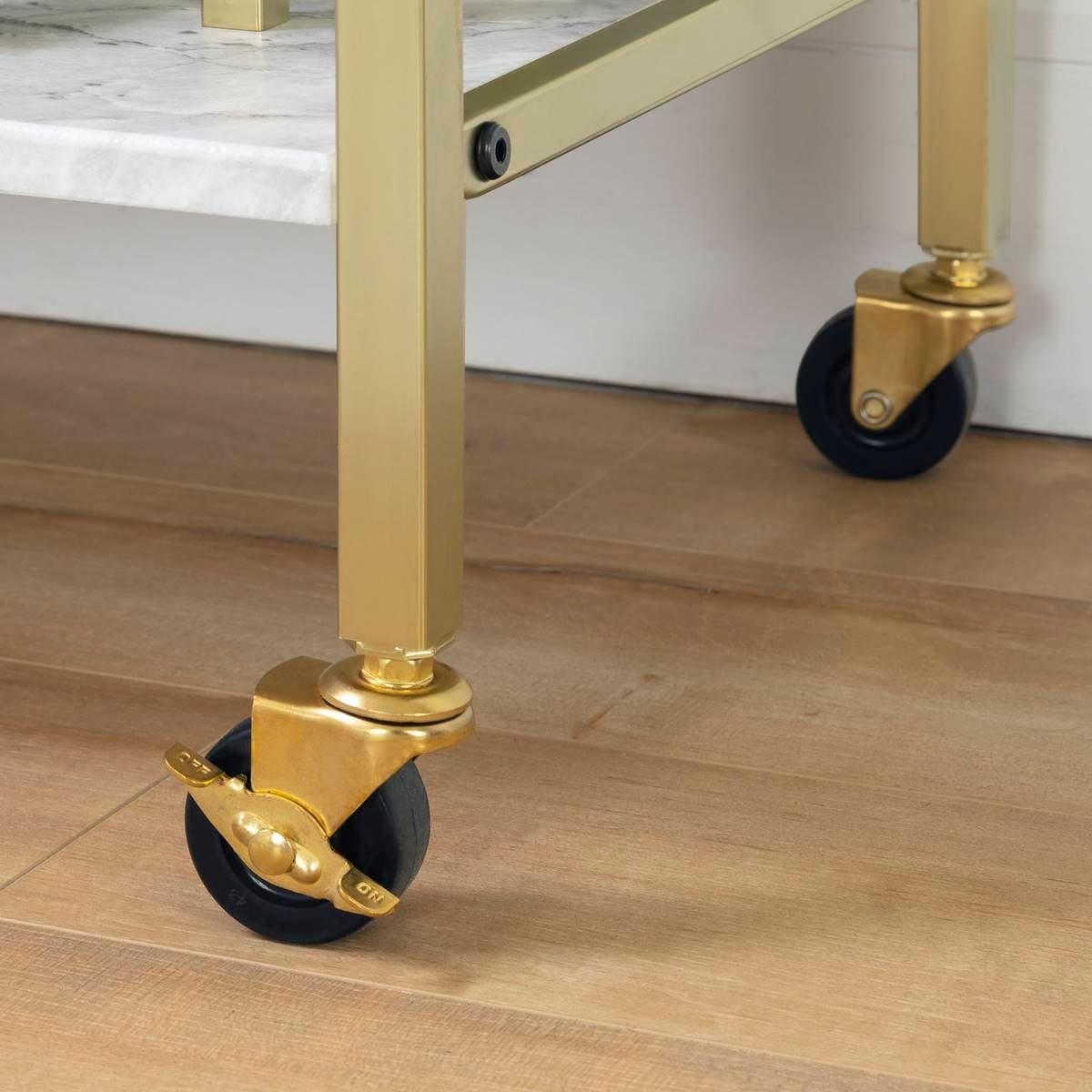 This South Shore Maliza bar cart with a wine glass rack will be your best friend during those fun nights with friends! Its glam look, achieved through the contrast between its marble styled surface and metal structure, is sure to be noticed. Wherever the party is happening – in the kitchen or the living room – you can take this bar cart with you!