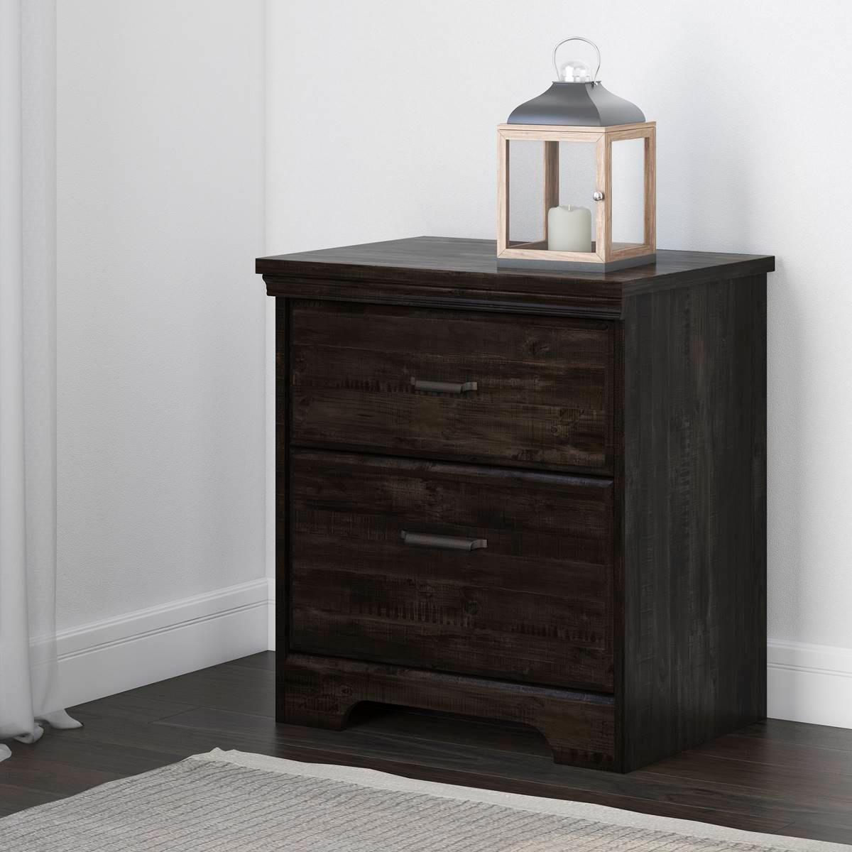 Description This South Shore Versa 2-Drawer Nightstand with cutout kickplate will give your bedroom a traditional and luxurious look. The sturdy table top is suitable for a lamp,...