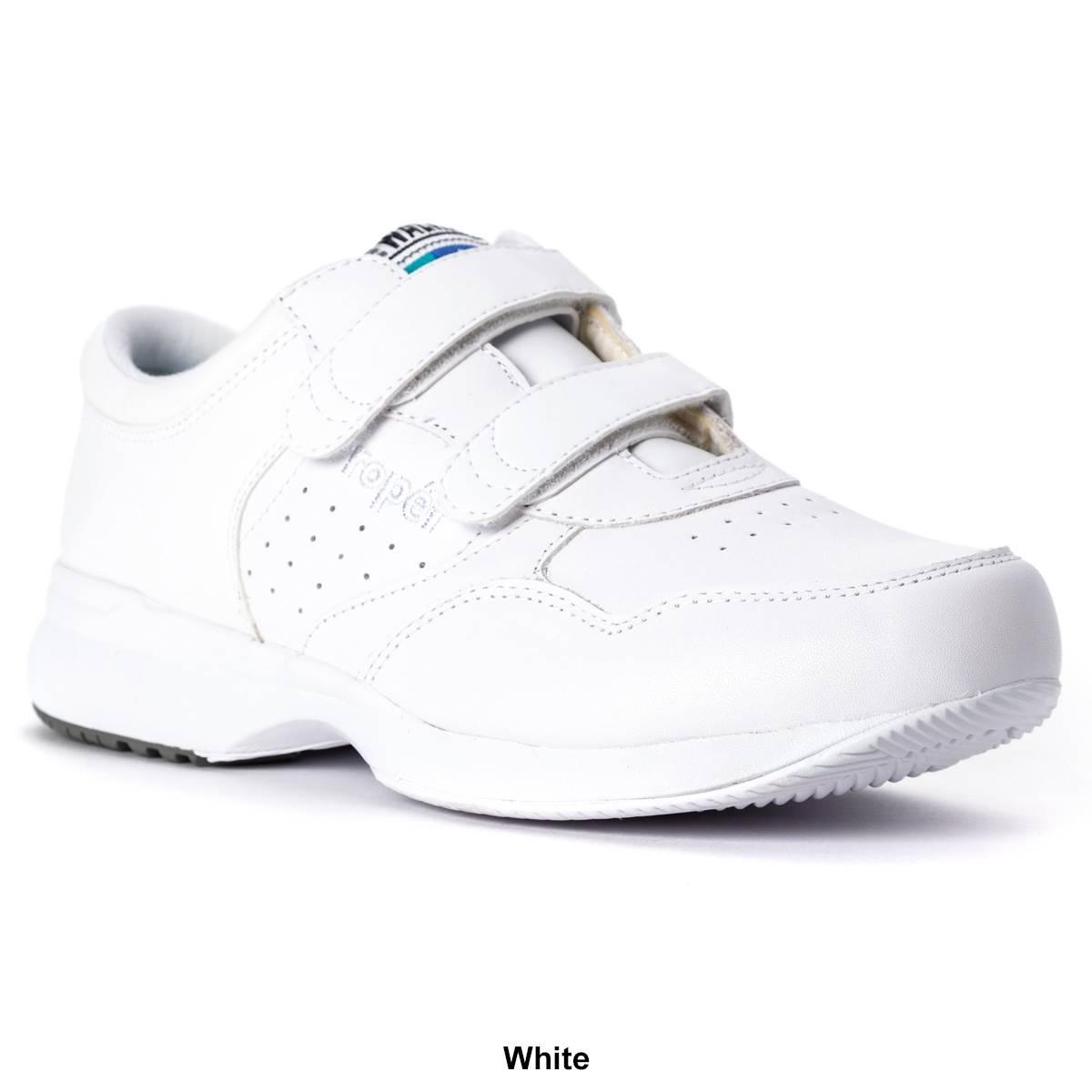 These Mens Propèt® LifeWalker strap sneakers are made of a leather upper with brushed nylon lining and a firm heel counter for added support. Featuring arch supporting high density open cell PU foam that allows air to flow for a cooler, healthier footbed. Also has cushioned EVA midsole with a herringbone tread rubber outsole.