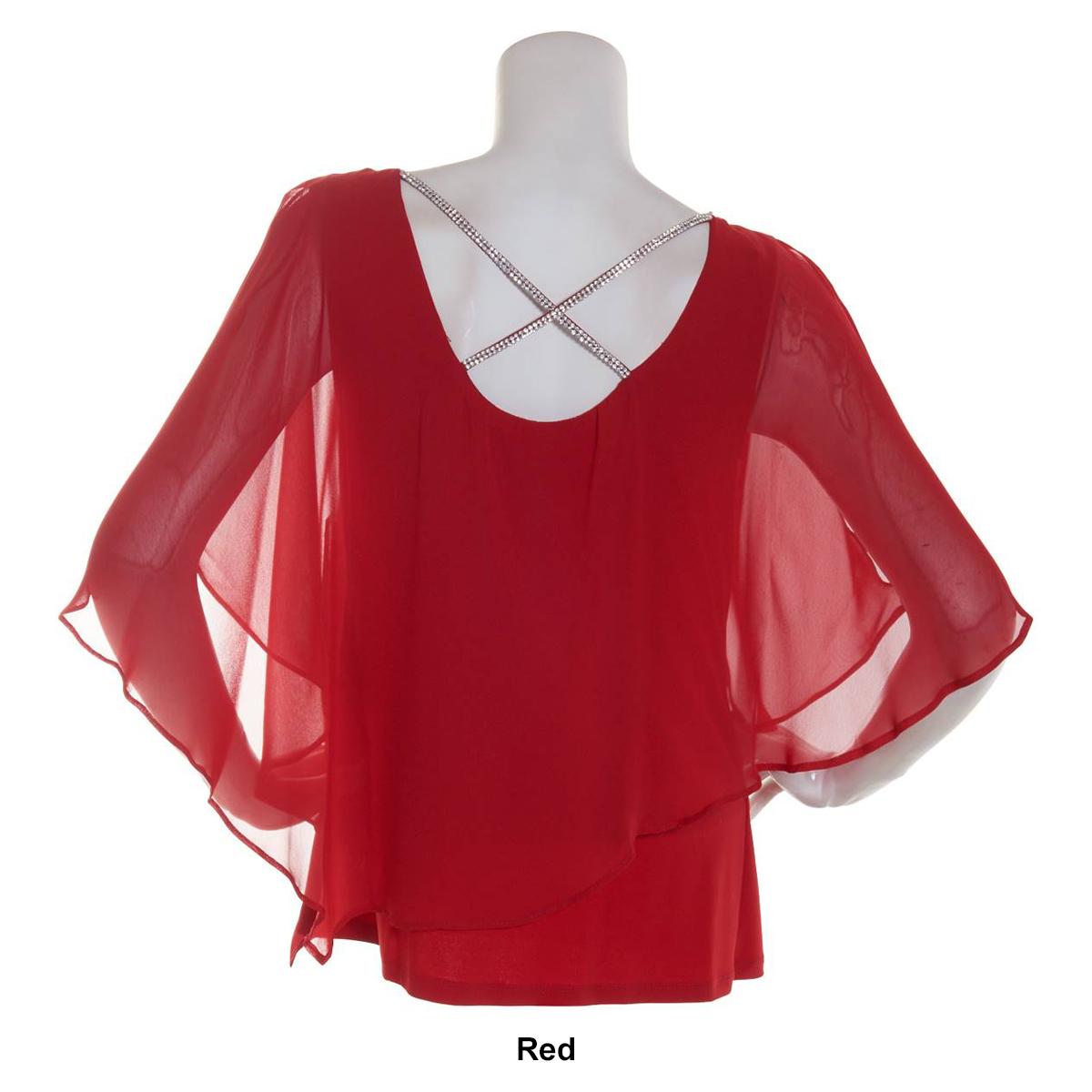 Womens MSK Asymmetrical Chiffon Rhinestone X Back Elbow Blouse