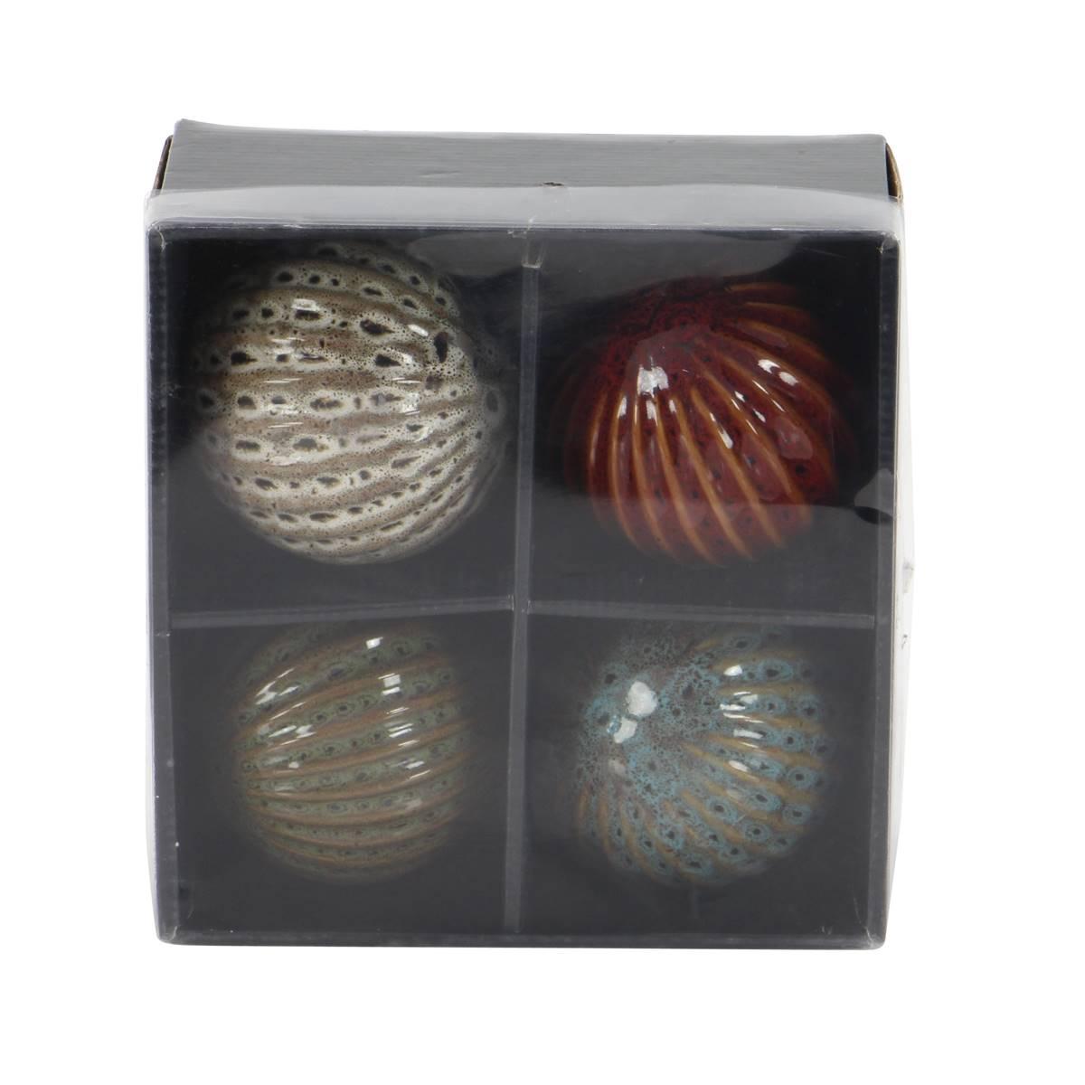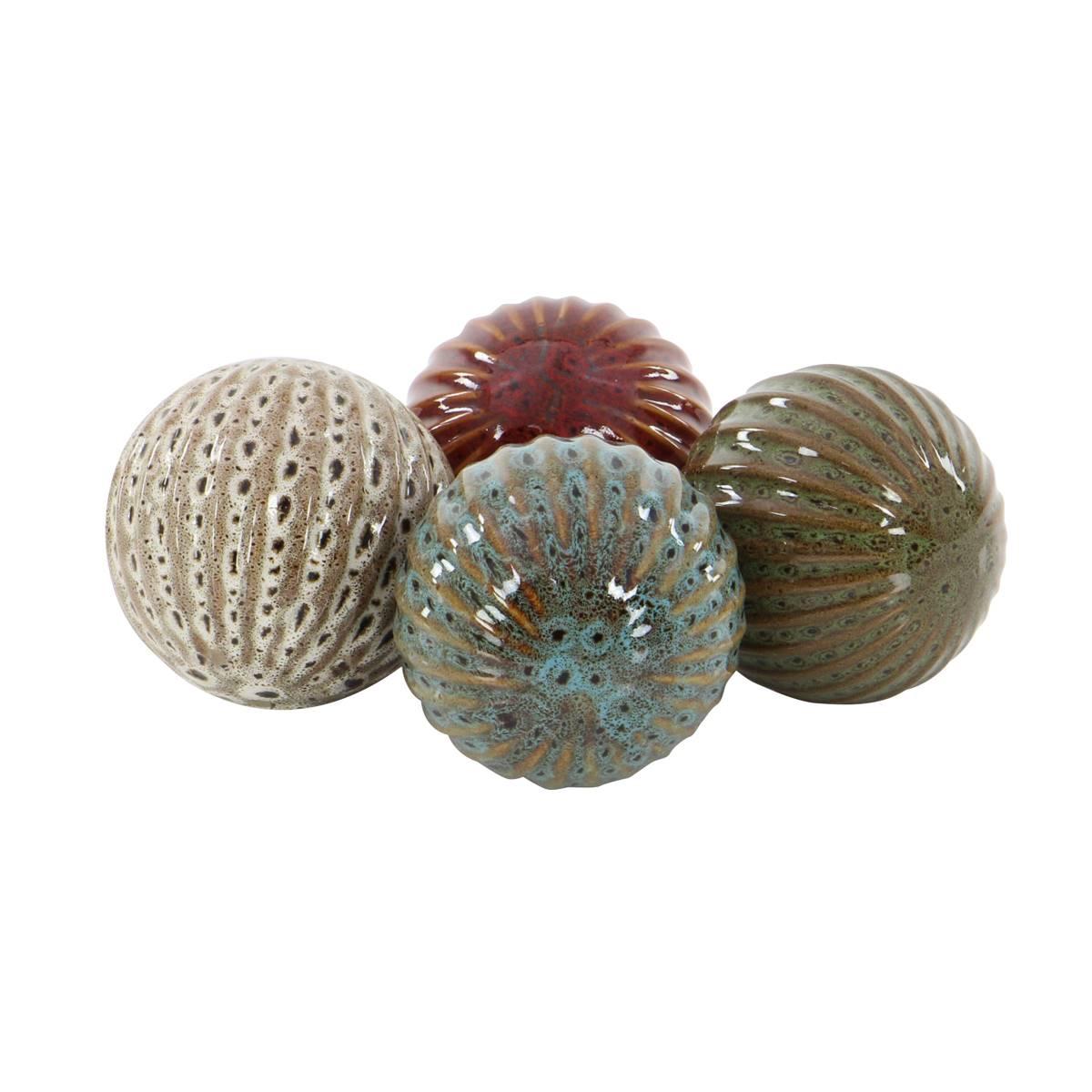 Description Use this 9th & Pike® set of four decorative balls to add character to a traditional or transitional style room. Each ceramic orb has a 4” diameter and a distinct...
