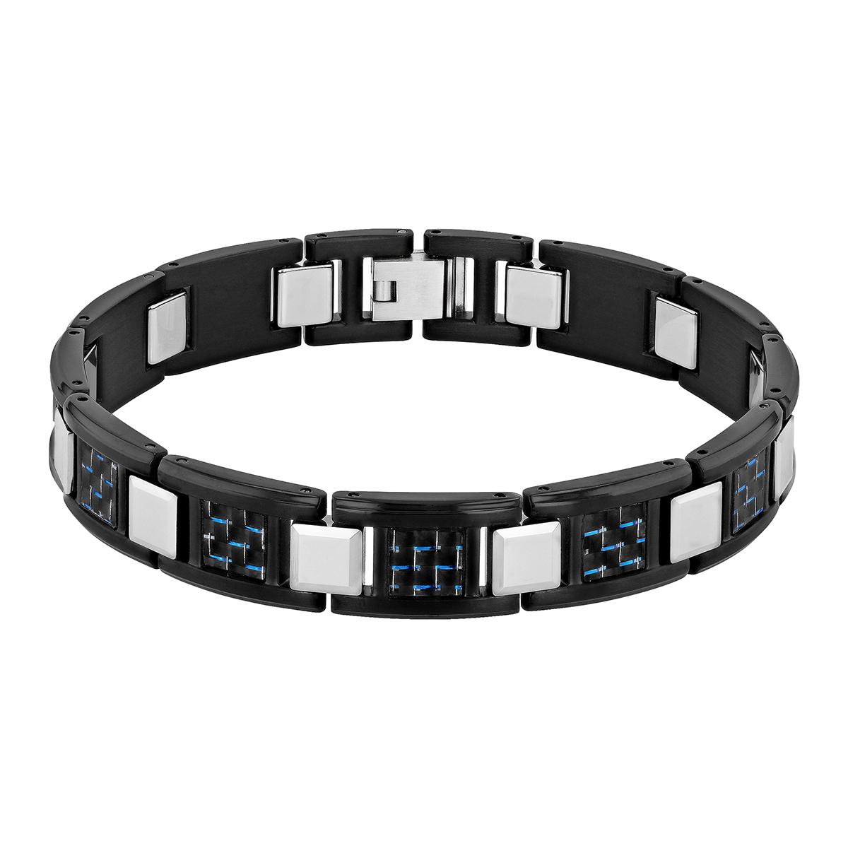 Description Pick a versatile accessory for daily use in this Mens Gentlemen´s Classics™ two-tone stainless steel link bracelet with carbon fiber inlay. Complete casual...