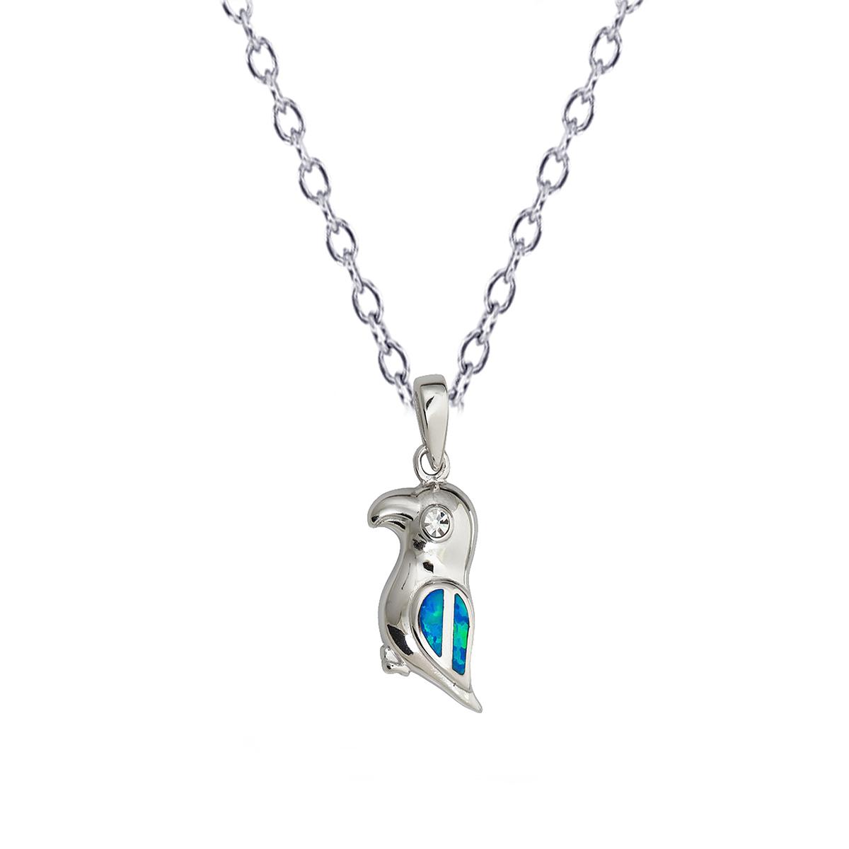 This Gemstone Classics™ sterling silver, rhodium necklace features a created opal bird pendant.