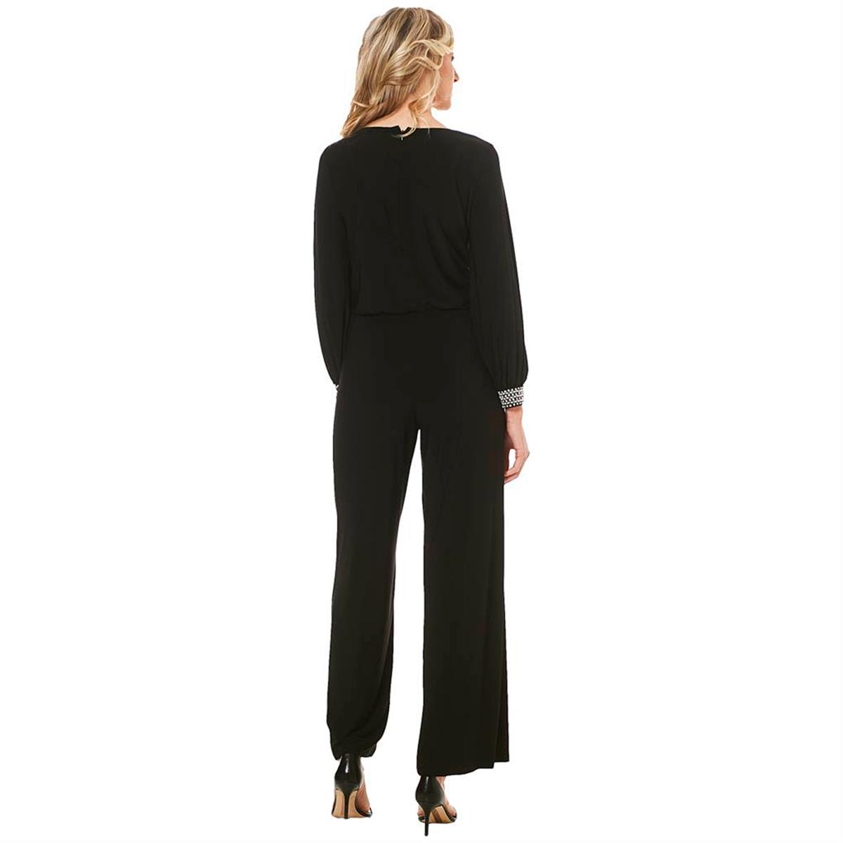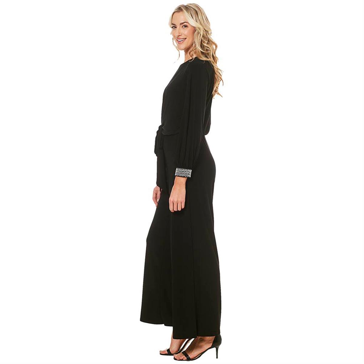 Take on a stunning look in the Womens MSK solid jumpsuit. This chic jumpsuit features a round neckline, long sleeves with rhinestone cuffs, and a side tie detail.