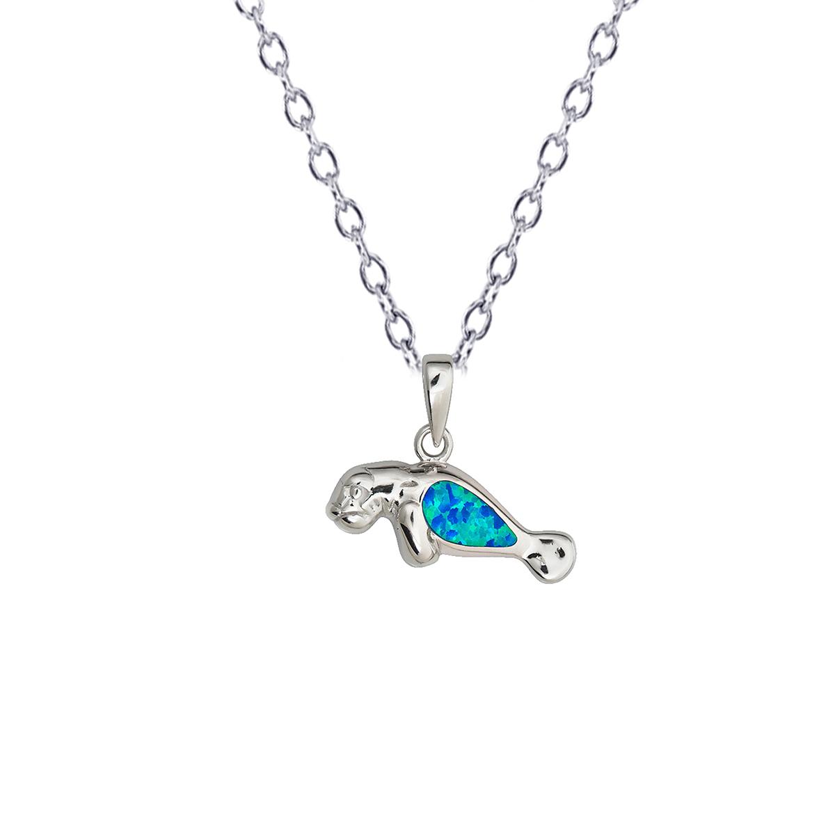 This Gemstone Classics™ sterling silver, rhodium necklace features a created opal walrus pendant. Size: 18 inch.