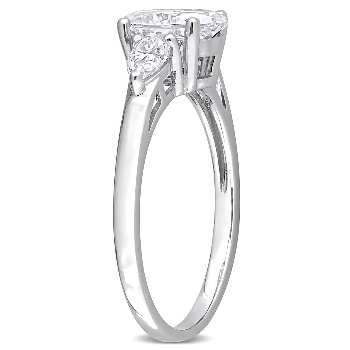 Description This classic Gemstone Classics™ moissanite three-stone engagement ring is crafted in sterling silver. This stunning wedding ring features an oval and two pear-cut...