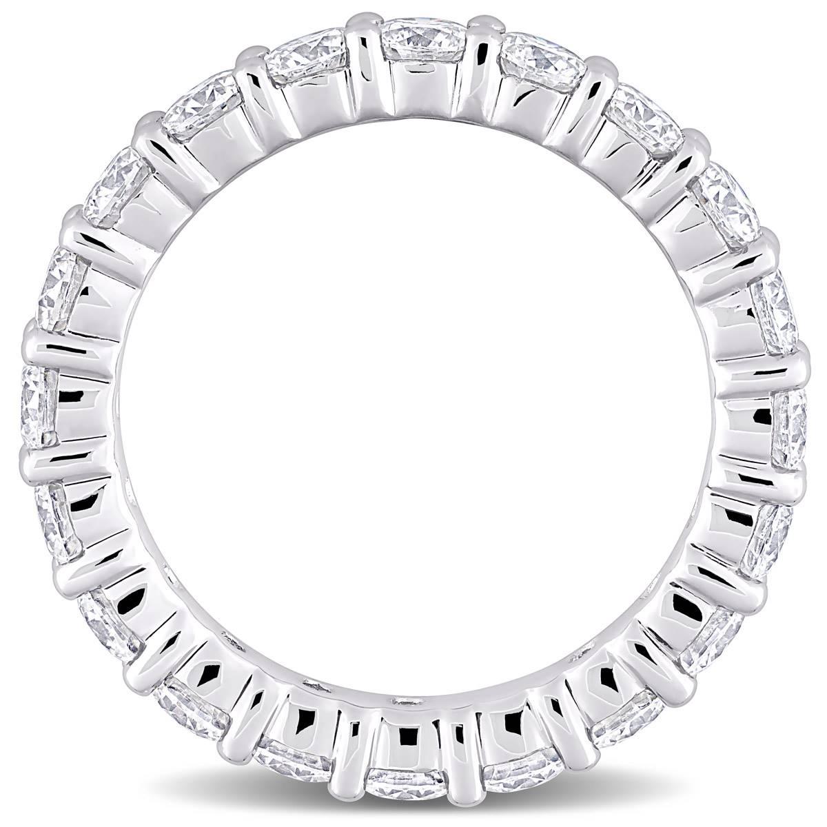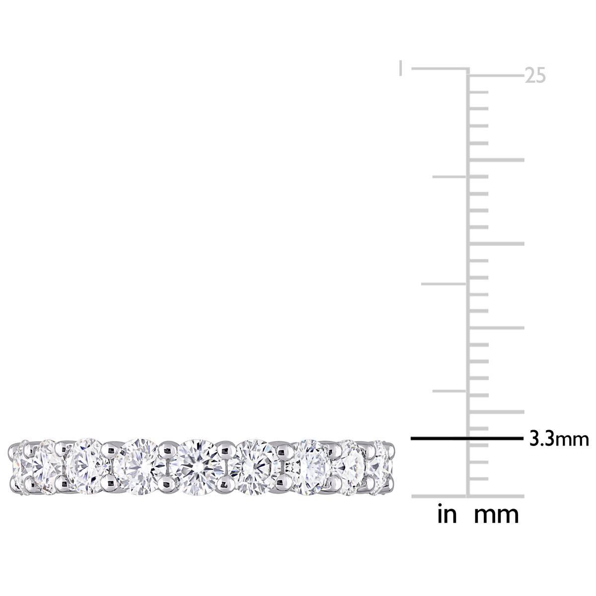 Description Impress your bride with this stunning Gemstone Classics™ moissanite eternity band. Crafted in lustrous sterling silver, this ring features 20 round-cut, prong-set...