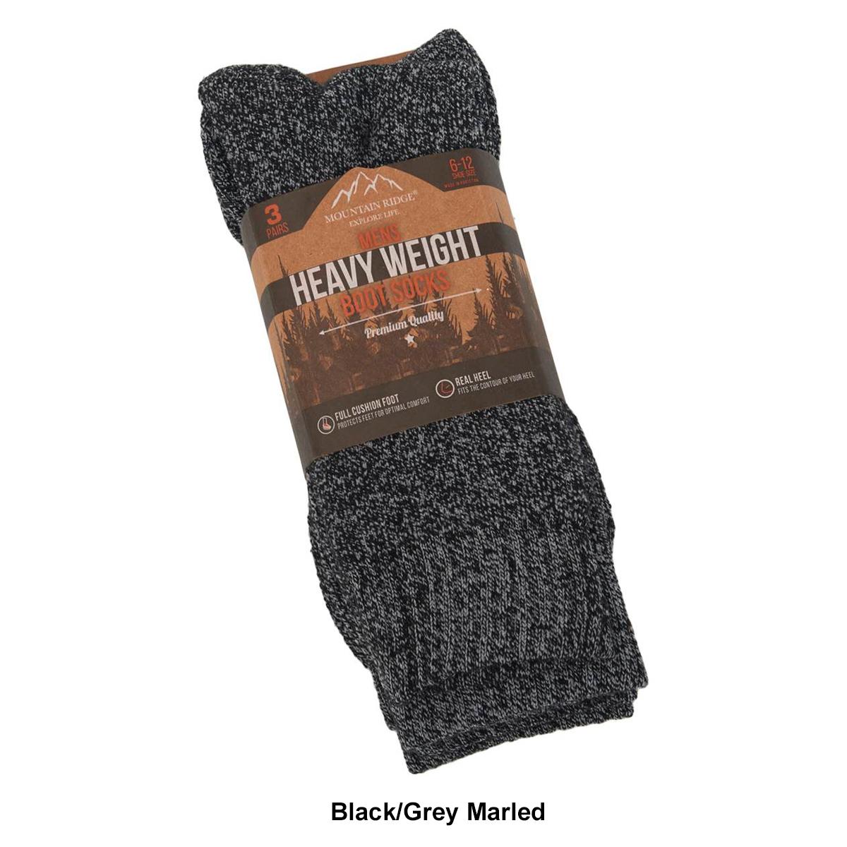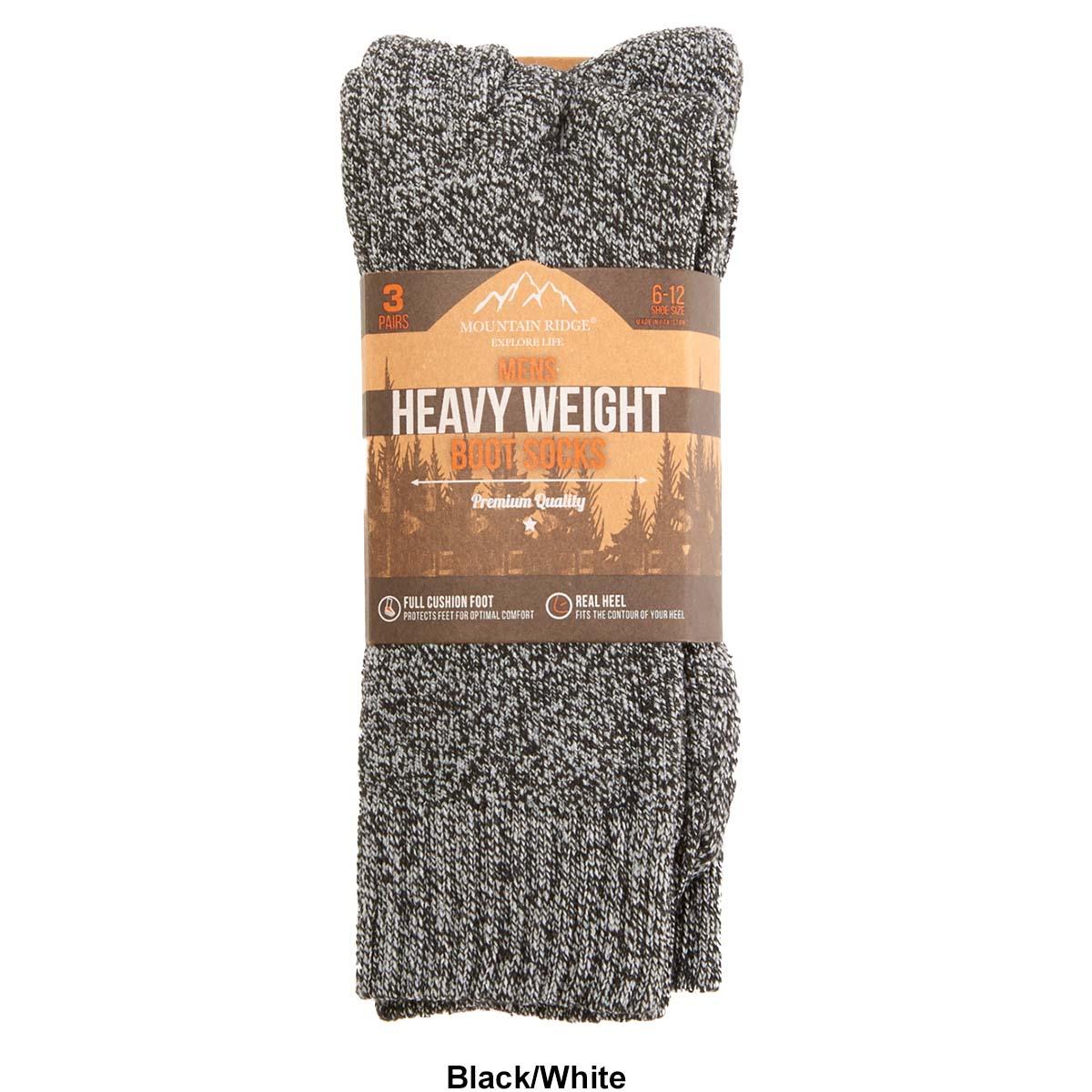 Add to your everyday basics with these Mens Mountain Ridge heavyweight boot socks. These socks feature a crew fit, full cushion foot, and real heel.