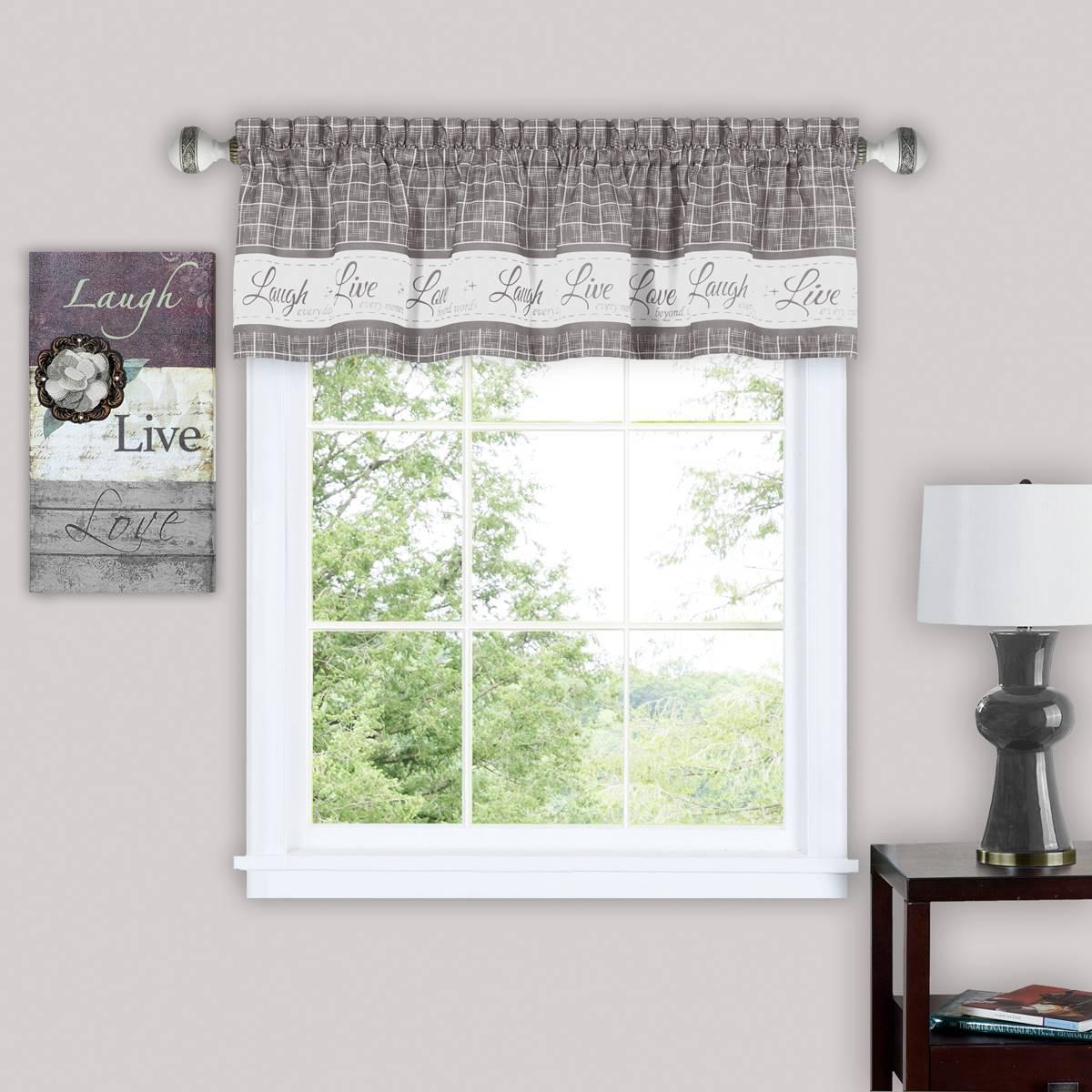Description The Achim Live, Love, Laugh window curtain valance features beautiful, printed words and printed woven plaid, sure to inspire any room. Its 1.5 inch rod pocket for...