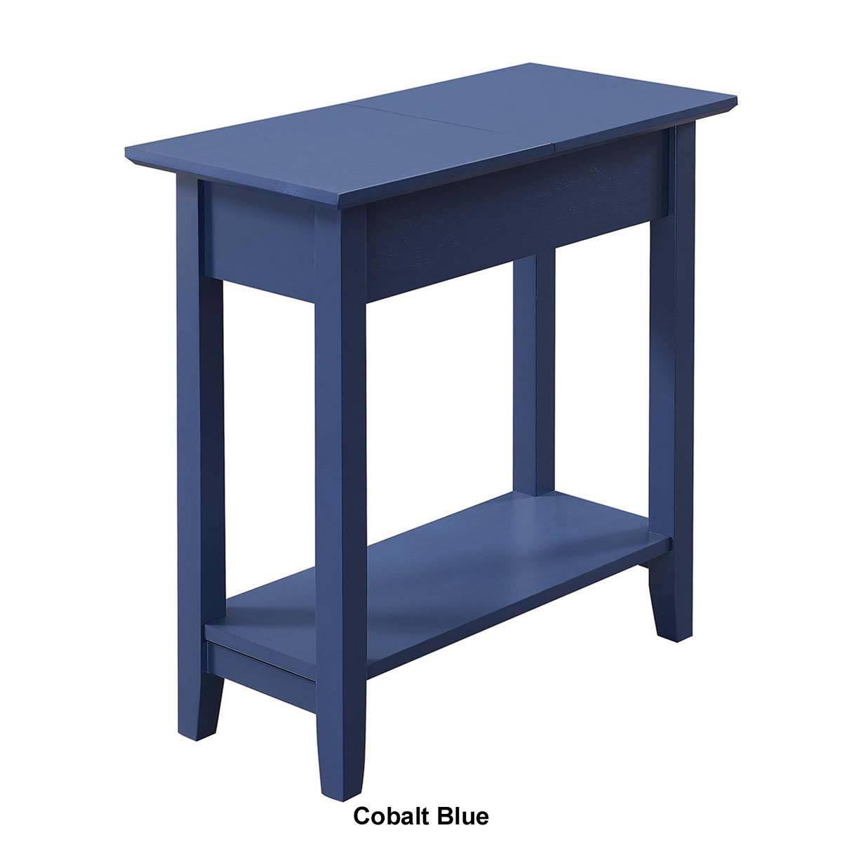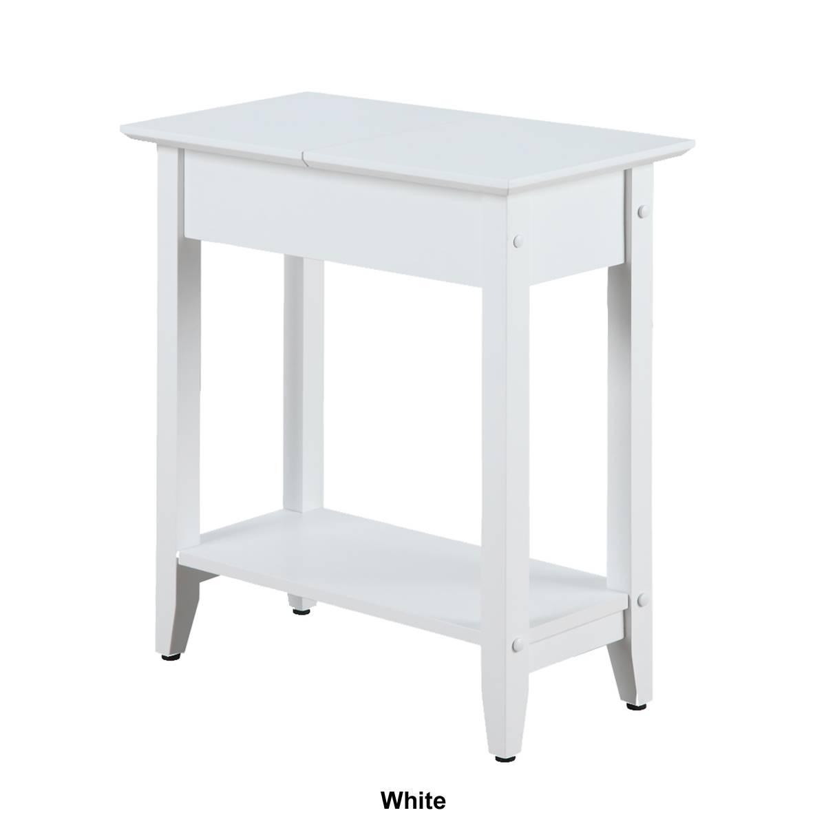 This Convenience Concepts American Heritage flip top end table with shelf is the perfect solution for keeping entertainment essentials close by! This stylish, yet functional end table features a hidden flip-top storage compartment. Open the tabletop to reveal plenty of space to store remote controls, charging cables, books, etc. The bottom shelf offers additional space for display or storage. Made from MDF, particleboard, and poplar wood, this table is built to last. In addition, this beautiful classic table is finished with a birch veneer for easy maintenance. Coordinating with current furnishings is easy thanks to the wide variety of finishes available.