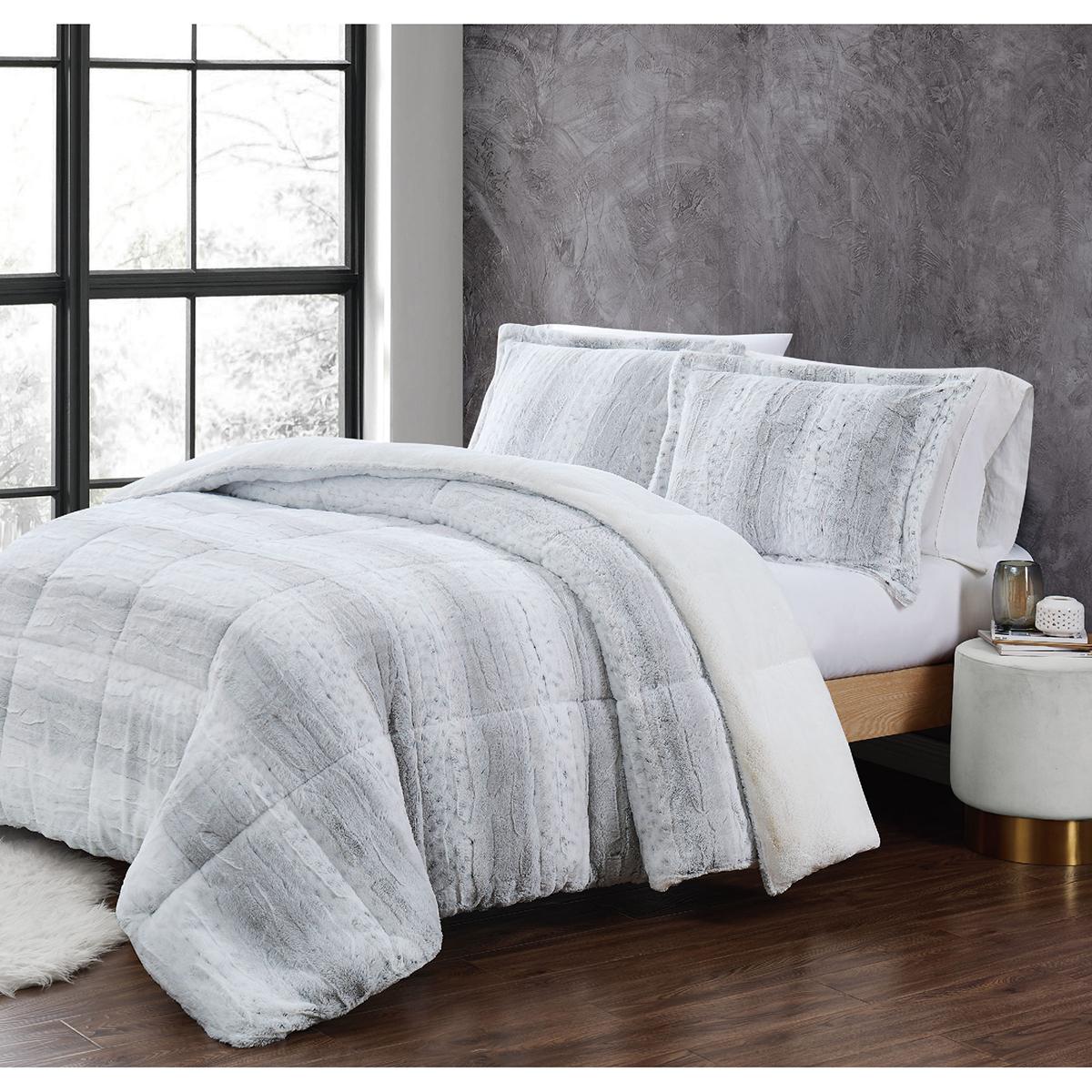 Description Christian Siriano NY® Snow Leopard Comforter Set. Christian Siriano oversized faux snow leopard comforters feature a faux fur face and back winter weight comforter....