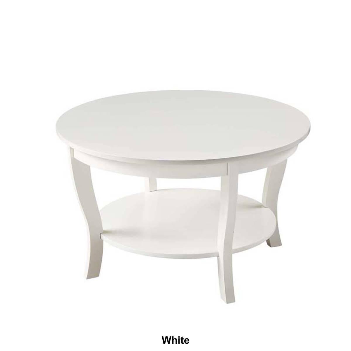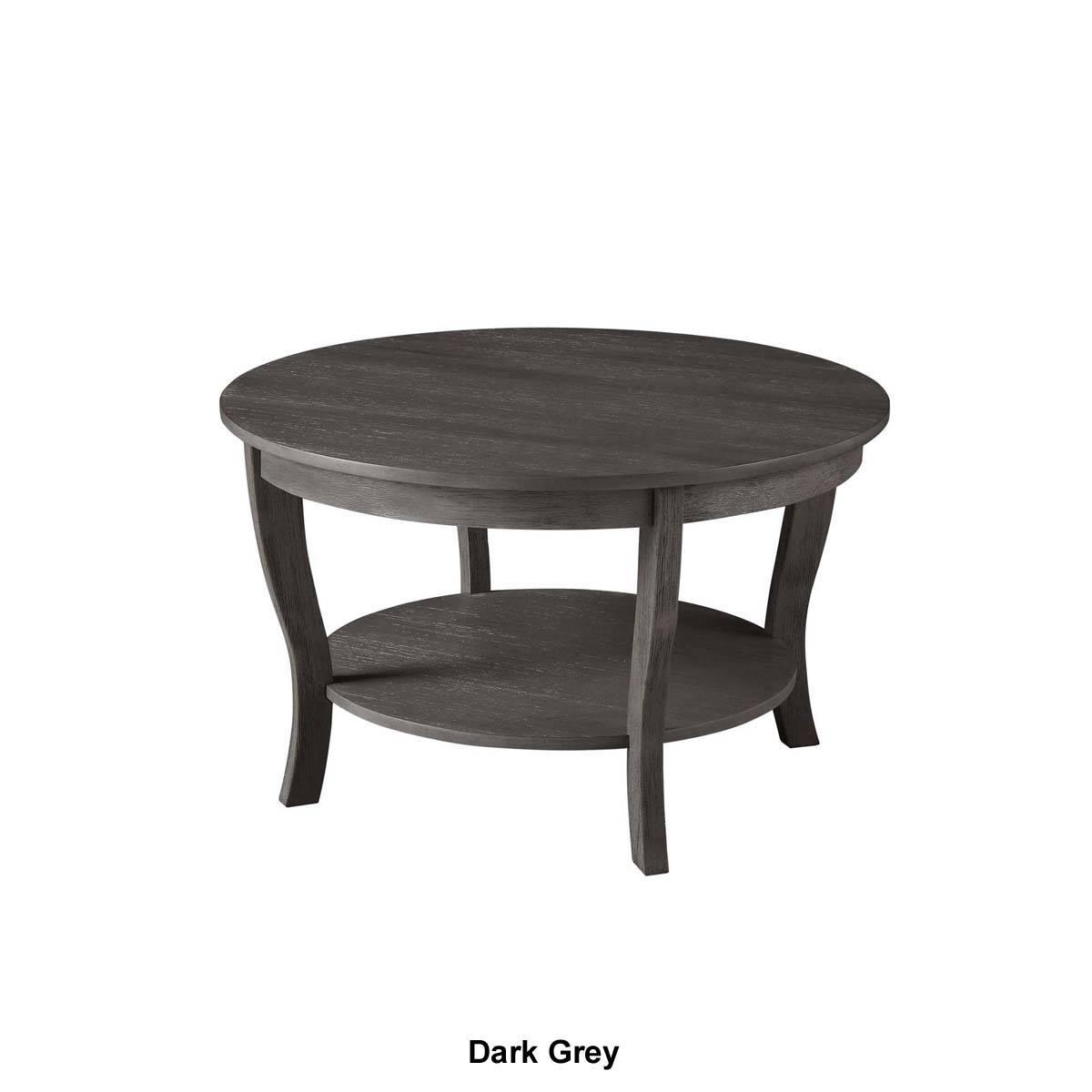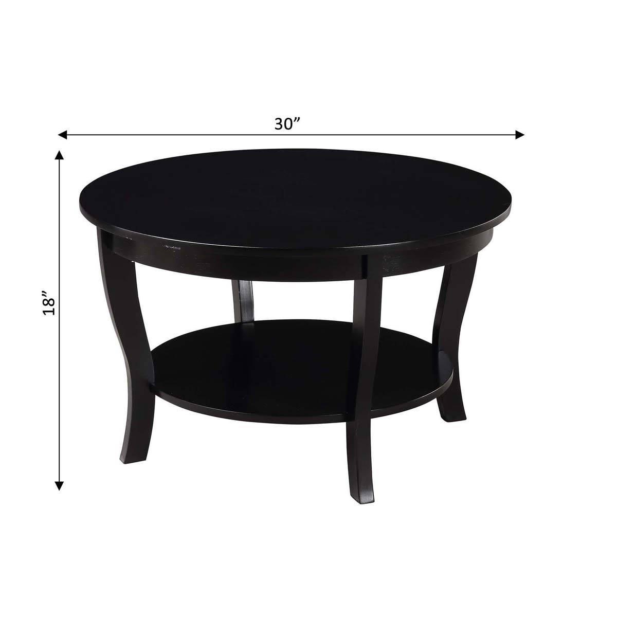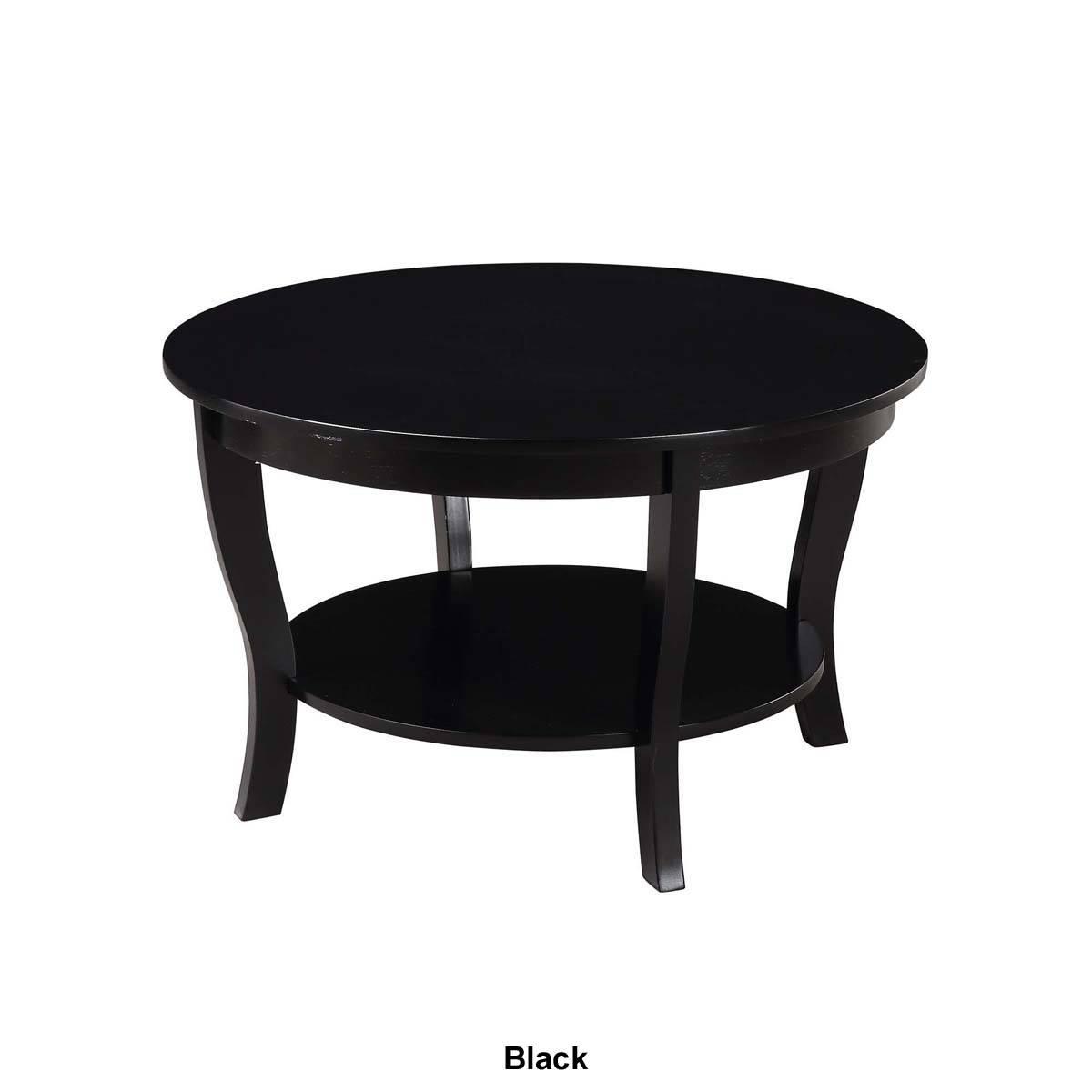 Instantly refresh your living room decor with this Convenience Concepts American Heritage Round Coffee Table. Its round silhouette features slightly curved legs along with a bottom shelf. The modern contemporary style will add a simple yet chic touch to your ensemble.