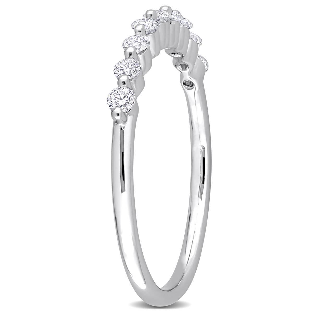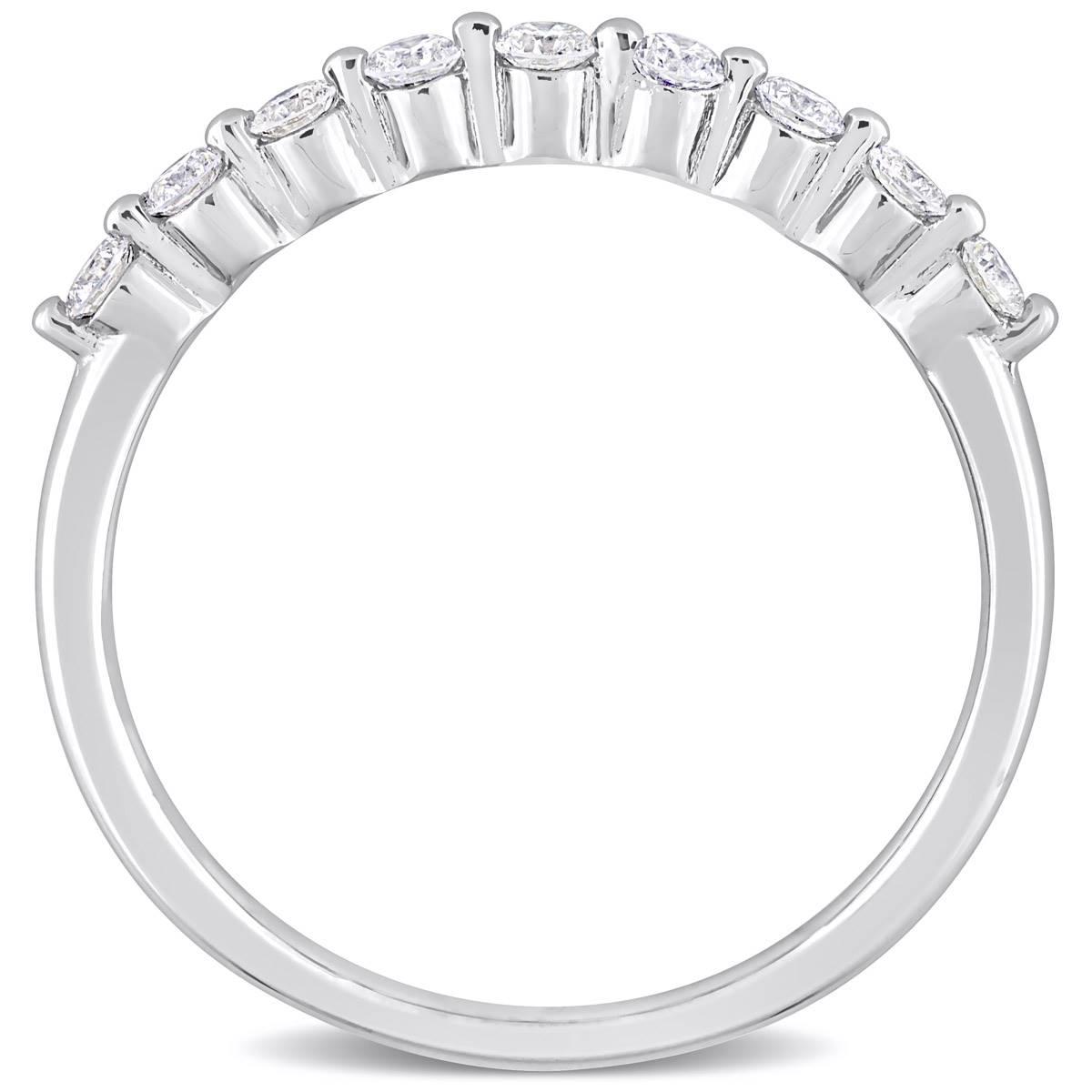 Make it official with this Gemstone Classics™ splendid lab grown diamond semi-eternity band ring. Crafted in lustrous platinum plated sterling silver, it features nine round-cut, prong-set, lab grown diamond studded half-way on its band. Polished to a brilliant shine, this semi-eternity ring is a valuable addition to any jewelry collection.