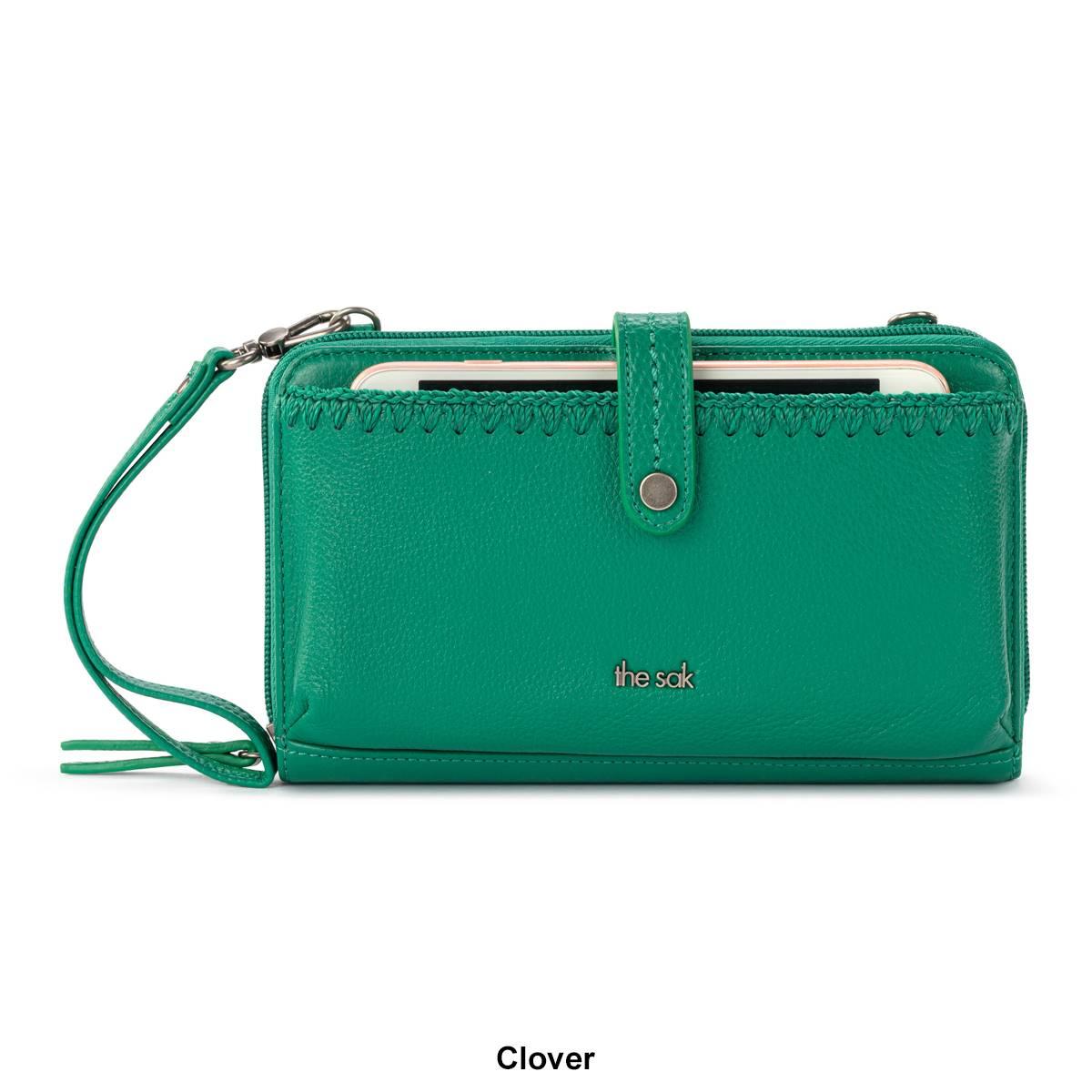 This The Sak Iris large smartphone crossbody is the perfect option for enjoying events in handsfree style. This crossbody includes a zip around closure, removable wristlet strap, removable and adjustable crossbody strap, front pin snap cellphone pocket, interior credit card and bill slots, interior zip pocket, lining, and pretty crochet detailing.