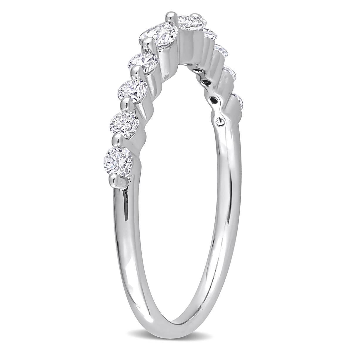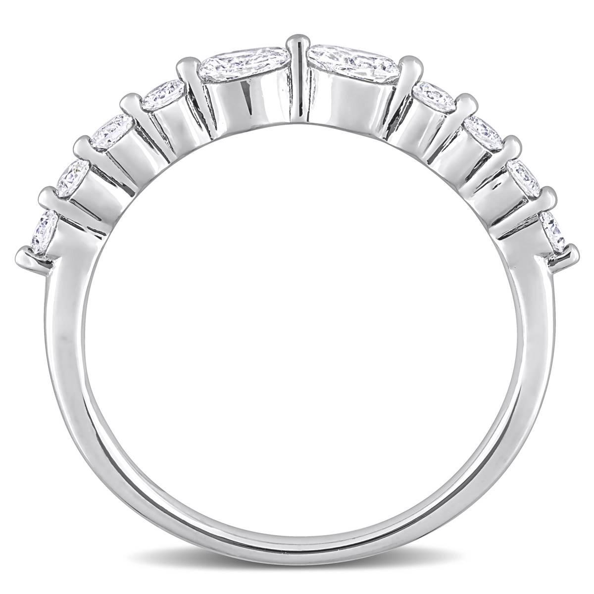 Make a stylish statement with this Gemstone Classics™ lab grown diamond vintage ring. Crafted in lustrous platinum plated sterling silver, it features eight round-cut, prong-set, and two pear-cut, prong-set has grown diamond gemstones studded half-way on its band. Polished to a brilliant shine, this gemstone ring is the perfect addition to any jewelry collection.