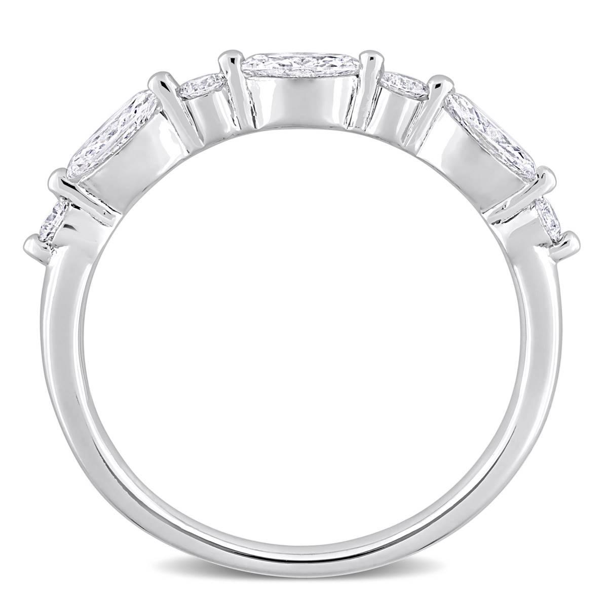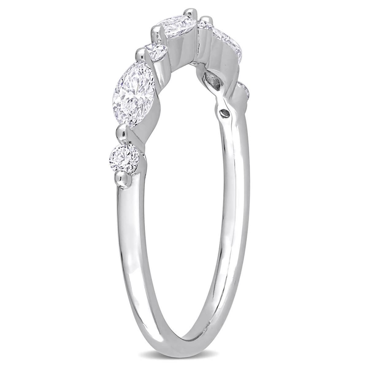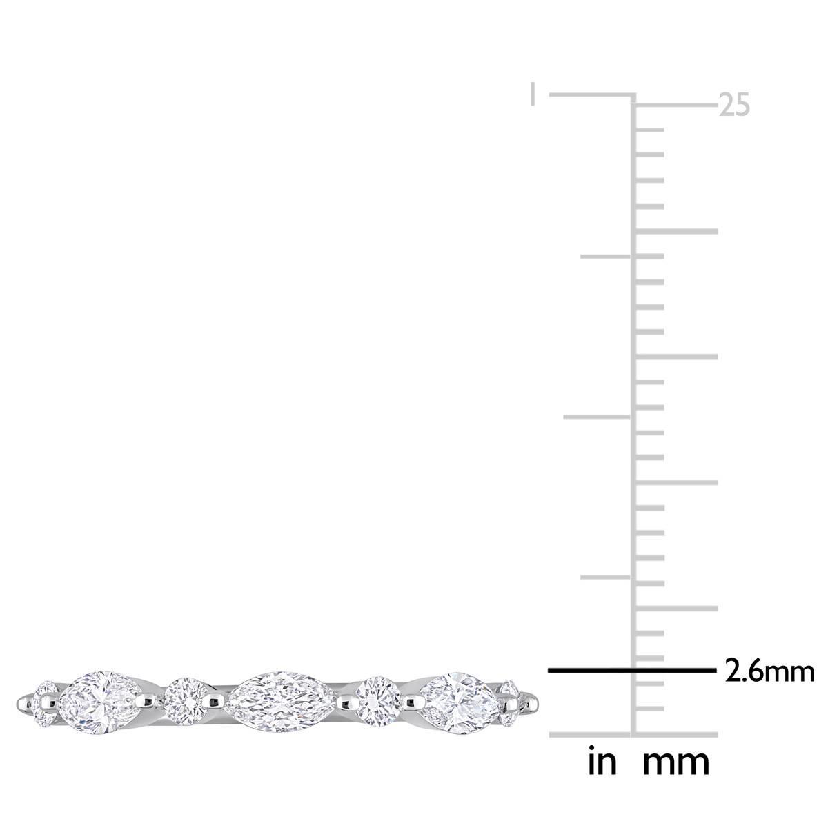 Add shine to your outfit with this Gemstone Classics™ lab grown diamond semi-eternity ring. Crafted in lustrous platinum plated sterling silver, it features four round-cut, prong-set, lab grown diamond gemstones alternating with three marquise-cut, prong-set lab grown diamond gemstones studded half-way on its band. Polished to a brilliant shine, this gemstone ring is the perfect addition to any jewelry collection.