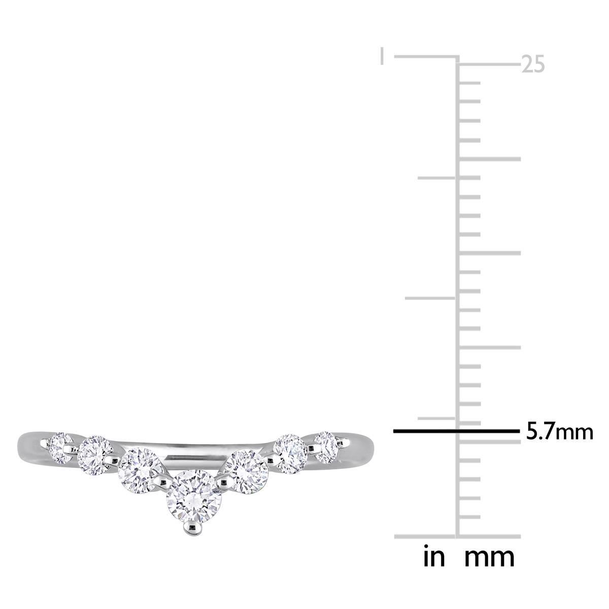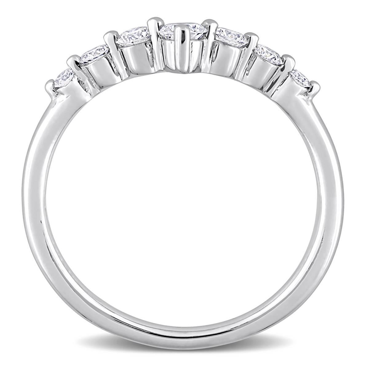 Be-dazzle your loved one with this Gemstone Classics™ lab grown diamond chevron anniversary ring. Crafted in lustrous platinum plated sterling silver, it features seven round-cut, prong-set lab grown diamond that are beautifully set on the chevron design.