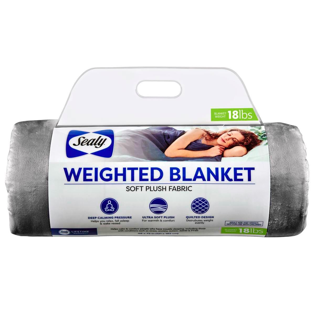 Description The Sealy® weighted blanket with removable cover provides a deep, calming pressure to help you relax and fall asleep. The quilted design helps the glass beads from...