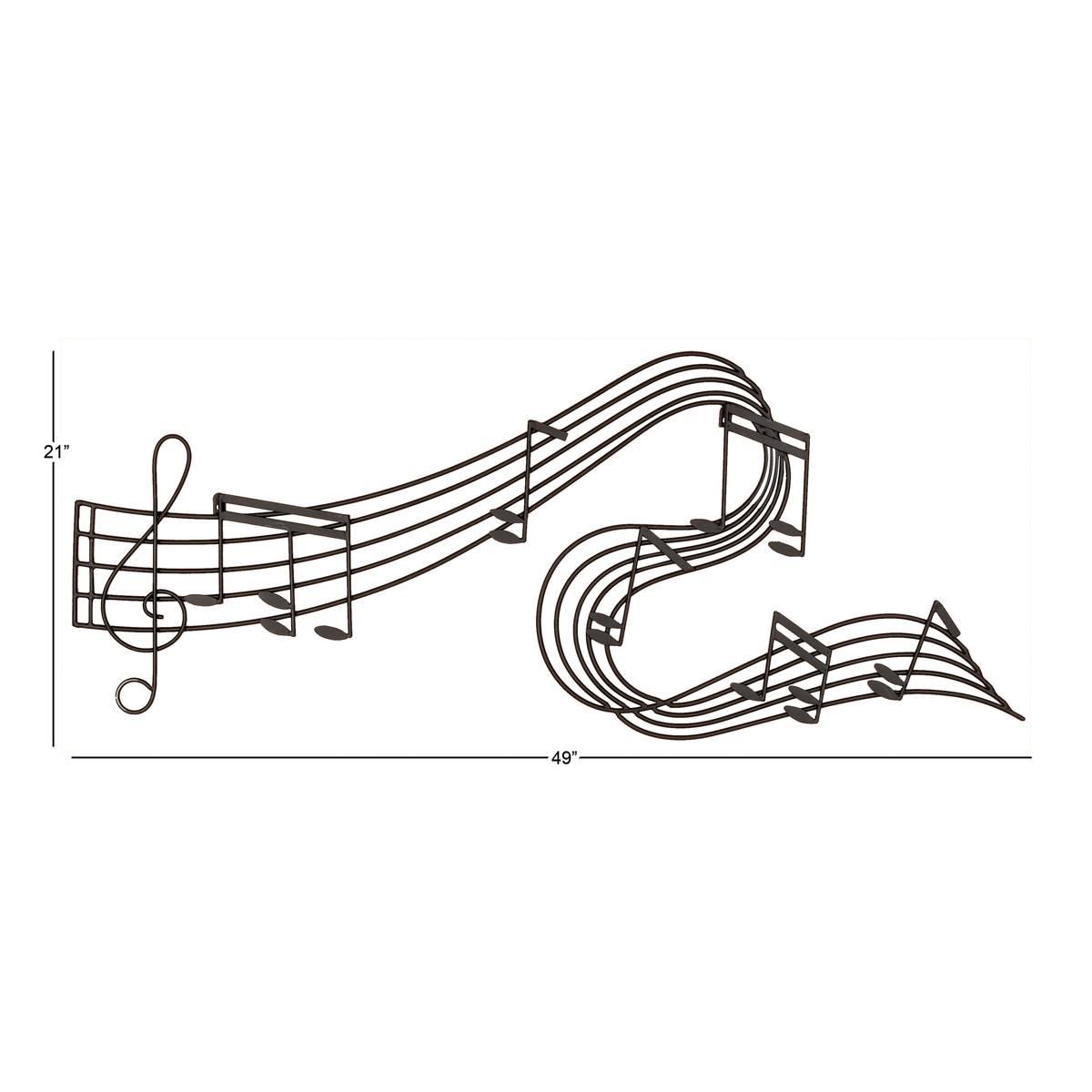 Keep sight of the charm of music with this 9th & Pike® large black music decor up on your wall. The G-clef, musical notes, and music staff form a waving, dynamic wall-mounted music sculpture with a single-dimension and minimalist look. Apart from being a personal wall decor at home, this eclectic wall art also makes a unique gift for musicians, music lovers, and eclectic interior homeowners.