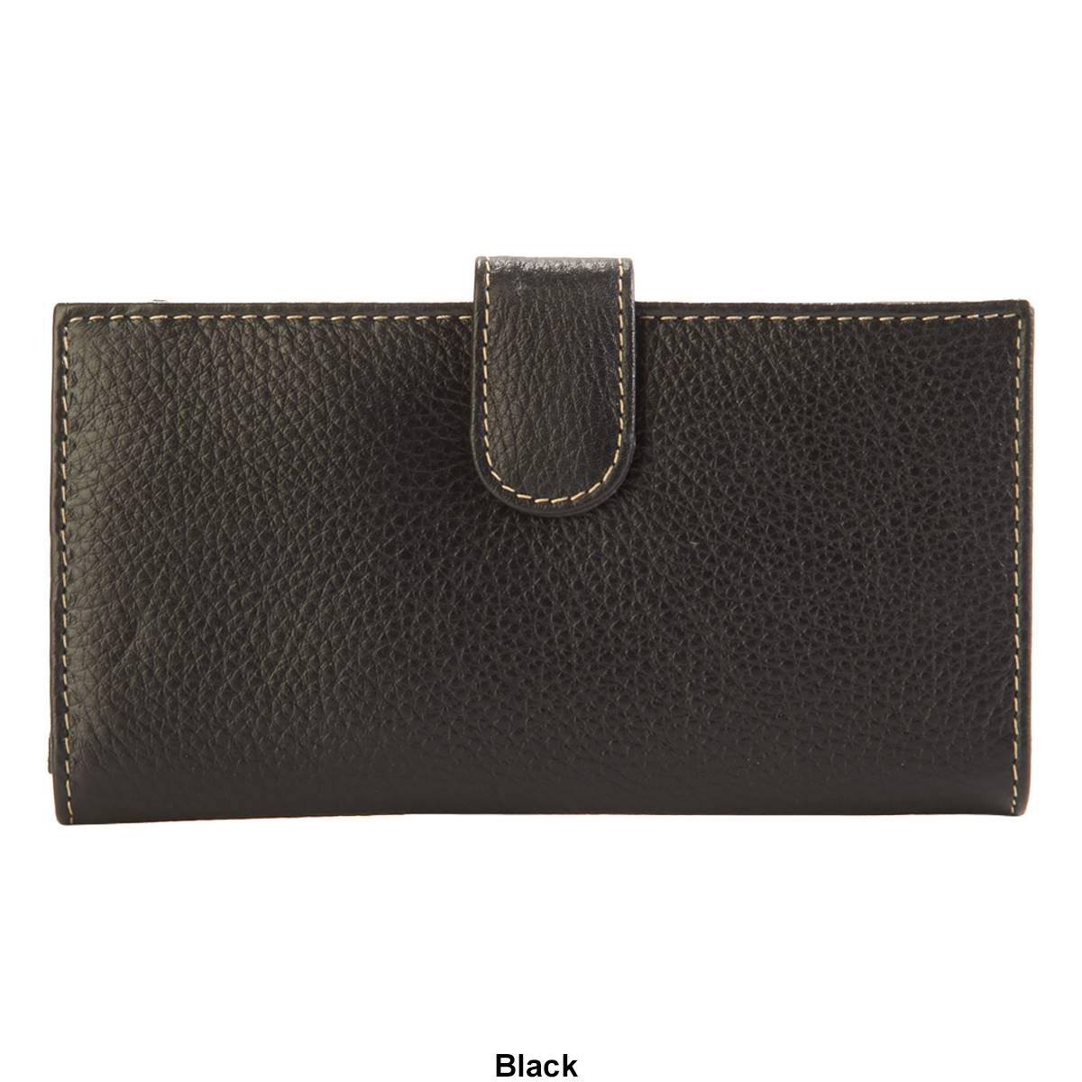 Keep your money essentials secure in this Womens Mundi slim clutch wallet. This solid style includes a snap tab closure, back zip pocket, an I.D. window, interior bill and card slots, and lining.