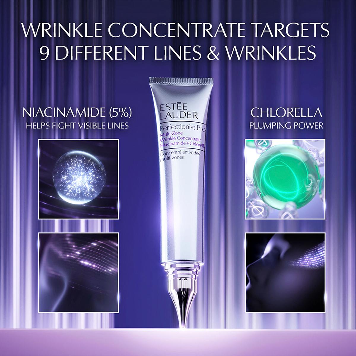 Estée Lauder™ Perfectionist Pro Wrinkle Shot. A precision corrector with Niacinamide and Chlorella that reduces the look of 9 types of lines and wrinkles, in all 3 key areas of the face.Multi-wrinkle diffusing power: reduce the look of 9 types of lines and wrinkles, in all three key areas of the face.