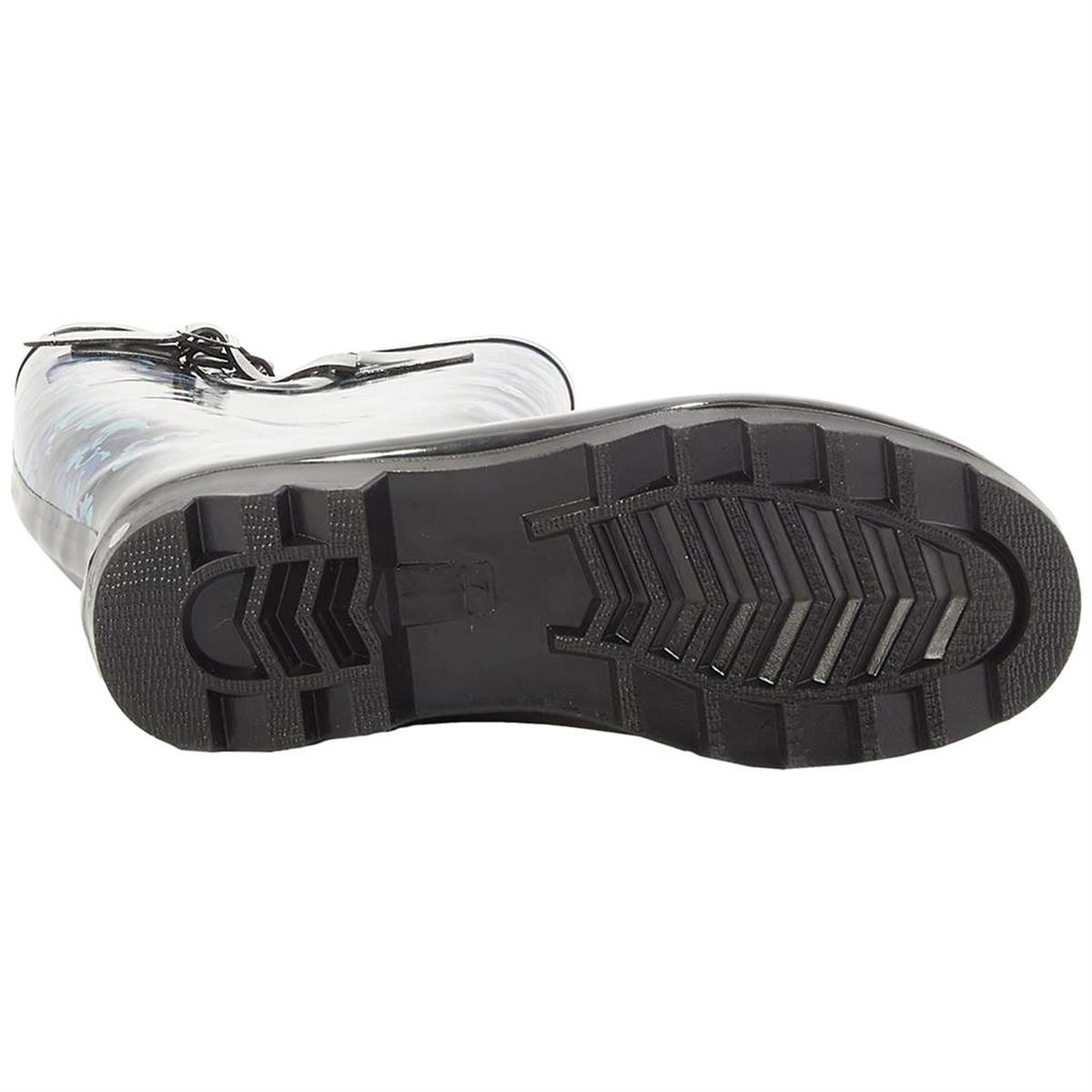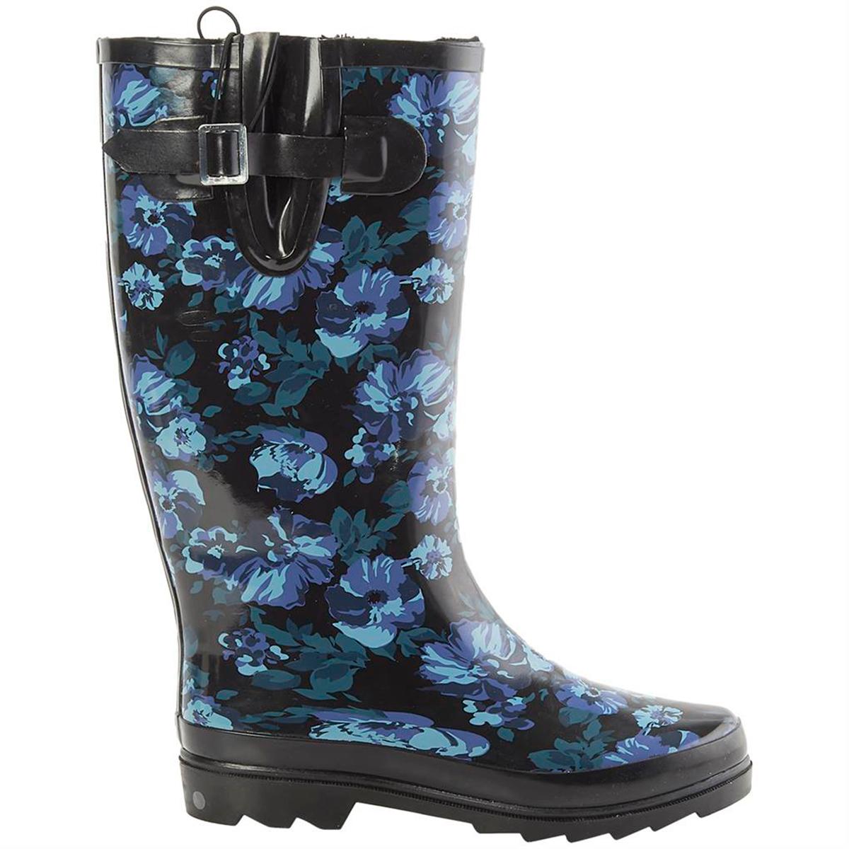 Brighten up a rainy day wearing these Womens Fifth & Luxe floral print tall rain boots with decorative buckle and faux fur lining.