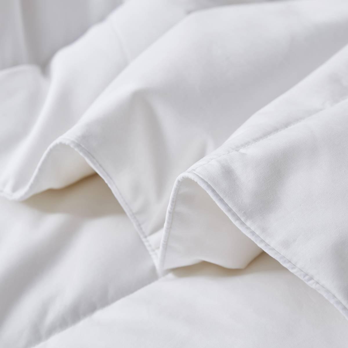 Enjoy the fresher feeling and excellent absorbency properties from this Martha Stewart All Season 233-thread count cotton goose down comforter. The extraordinary mix of fabrics helps to reduce the odor and growth of bacteria, reducing the number of times you need to bring your comforter to the dry cleaning.