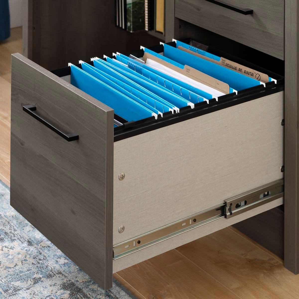 Description The two drawers in this South Shore Gravity work desk lets you organize your work tools to be more efficient. It also features an open space, which is perfect for...