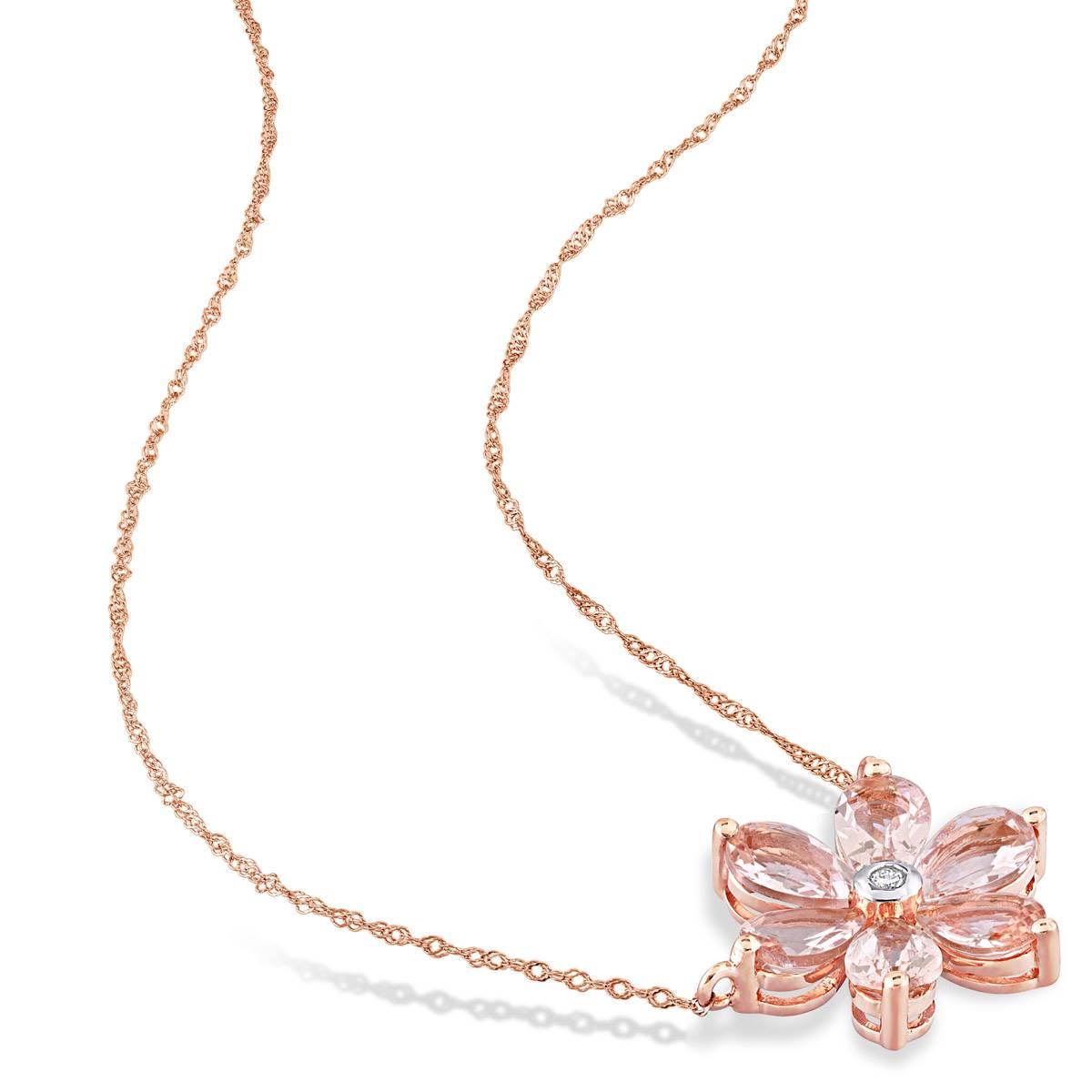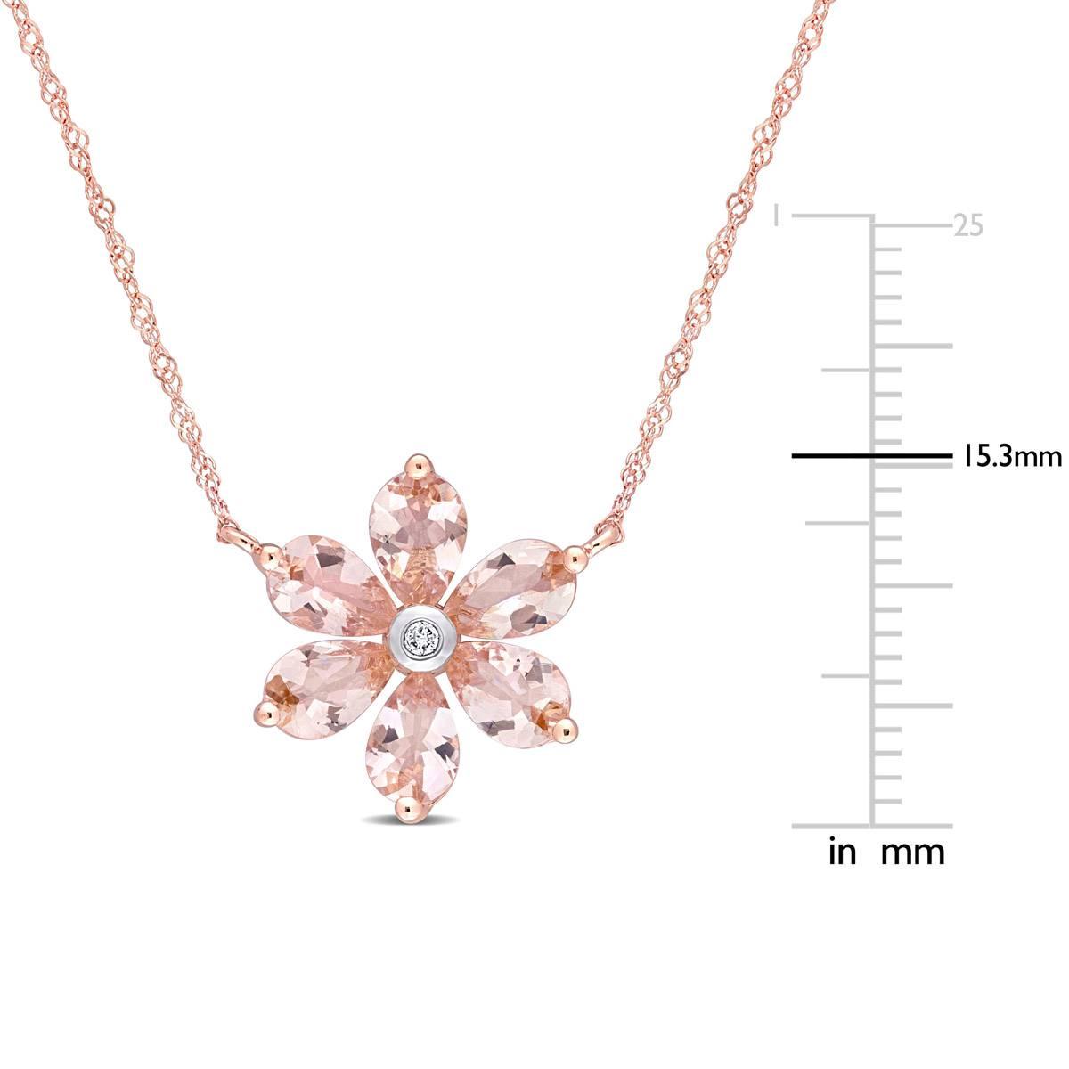 Description Dazzle everyone when you wear this Gemstone Classics™ 10kt. Rose Gold Floral Chain Pendant. This marvelous morganite and diamond flower necklace make a perfect...