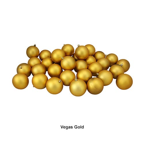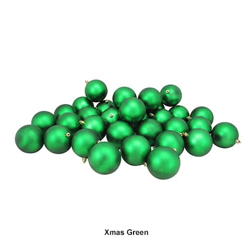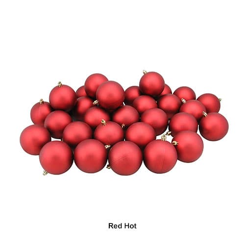 This Northlight Seasonal matte shatterproof Christmas 32 piece ball ornaments will allow you to build your collection quickly and decorate with more possibilities. These shatterproof ornaments combine the beauty and luster of real glass with the unbreakable practicality of plastic. They are 3.25 inches in diameter, come equipped with gold ornament caps and a pack of matching gold string hangers are included for optional use (ornament hooks not included).