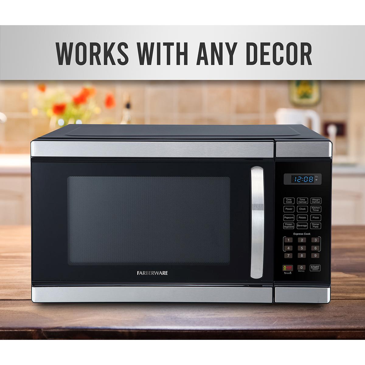 Description Farberware® Professional sleek brushed stainless steel microwave oven is the ideal anywhere you need it solution for home or at work. It offers 1000 Watts of output...