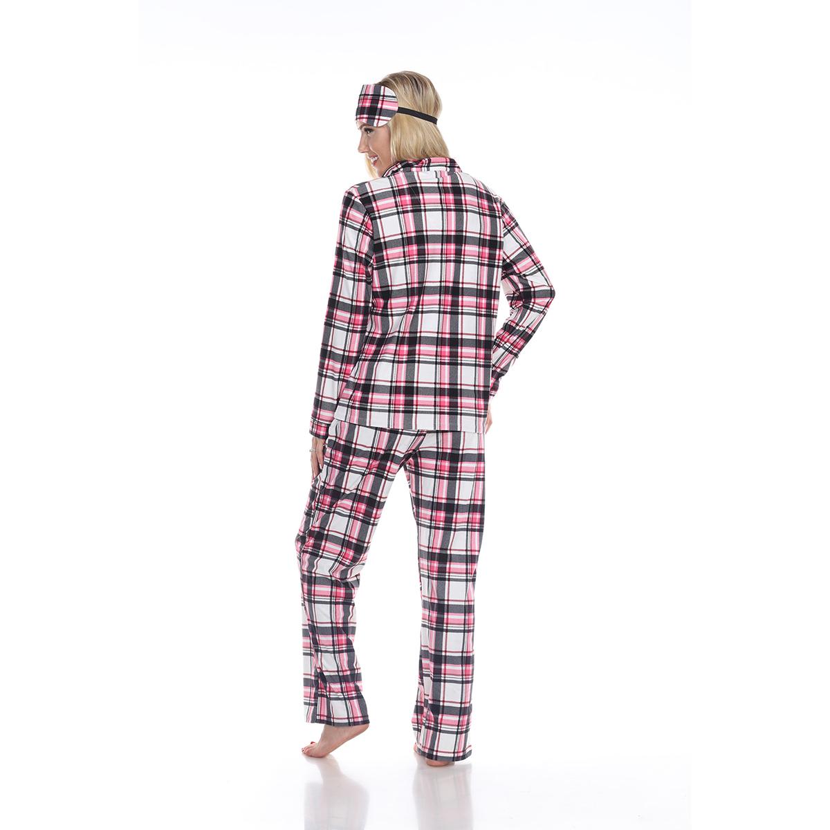 Description The Womens White Mark pink plaid pajama set is very comfortable to touch and wear. The 3 piece sleep set features a long-sleeve button-down top, long leg regular fit...