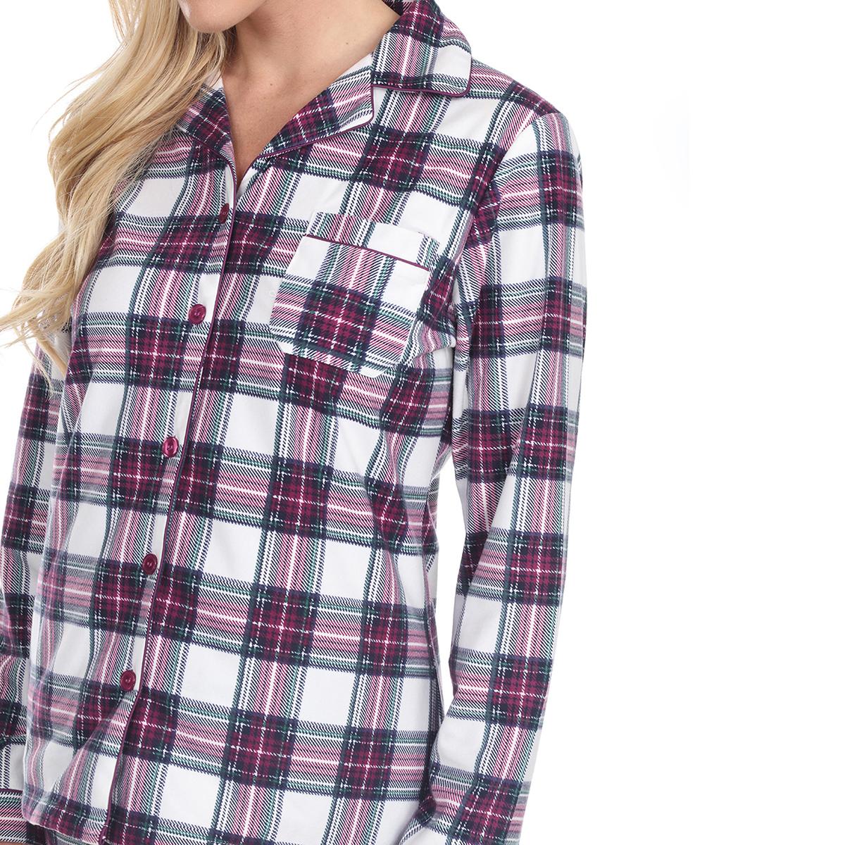 Description The Womens White Mark plaid pajama set is very comfortable to touch and wear. The three-piece sleep set features a long-sleeve button-down top, long leg regular fit...