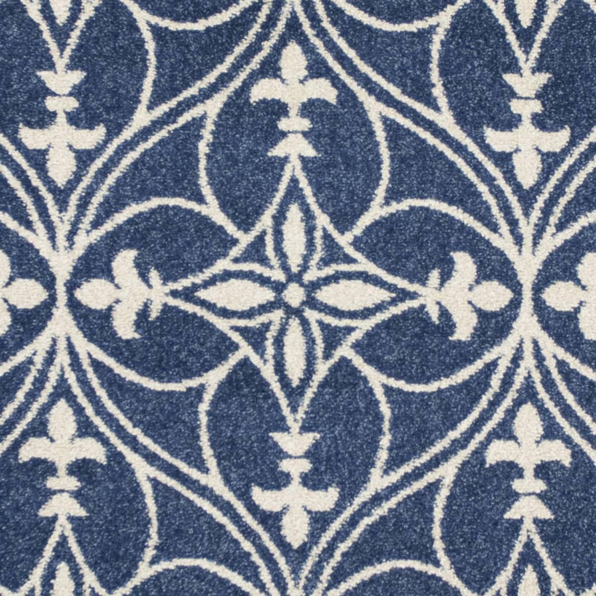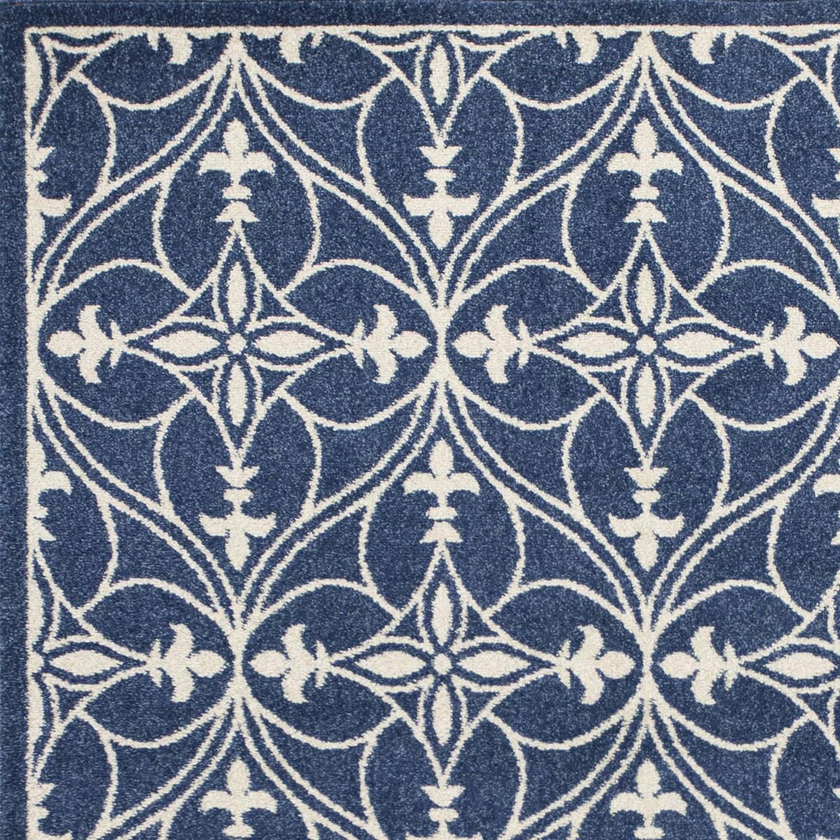 Bring a touch of elegance to any living space with the neutral colors and geometric design on a blue ground of this KAS Lucia Denim Bentley rug that offers a sophisticated yet trendy look. When cleaning, vacuum with a floor attachment, spot clean with a mild detergent and blot spills immediately for a lasting look. If used outdoors can be hosed off and dried on a flat surface.