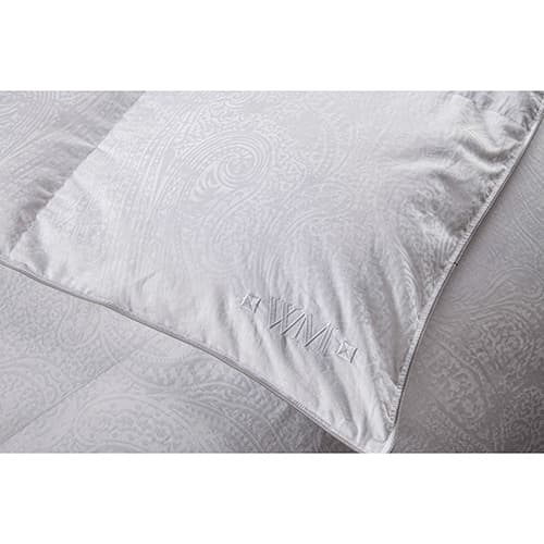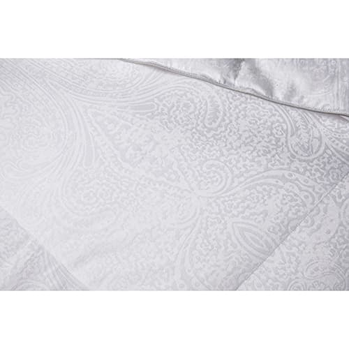 The Wesley Mancini Collection warmth down comforter is filled with the perfect amount of white duck down fill for staying warm on those cold nights! The 300 thread count beautiful jacquard woven and 100% cotton fabric is a simple way to add a chic touch to any room. Filled with 75% white goose down and 25% white goose feathers, and 600 fill power. Spot Clean. Dry clean recommended.