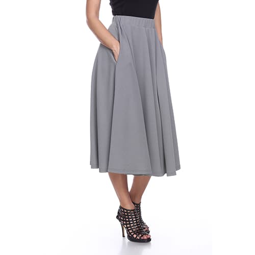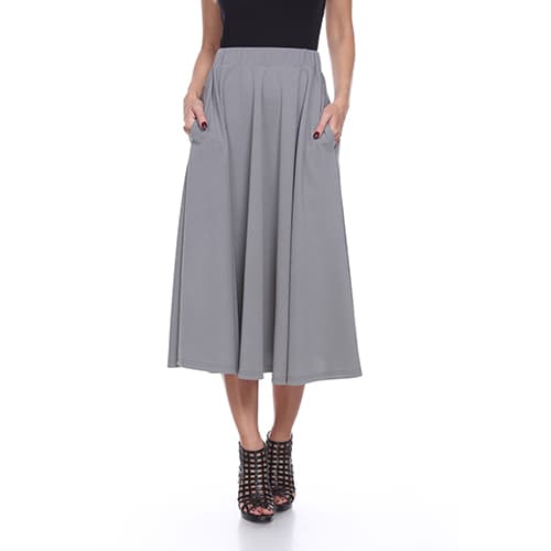 The Womens White Mark flared midi skirt showcases a breezy flared skirt with pockets and is perfect for keeping cool on a hot summer´s day! 95% Polyester. 5% Spandex. Hand wash. Hang dry.